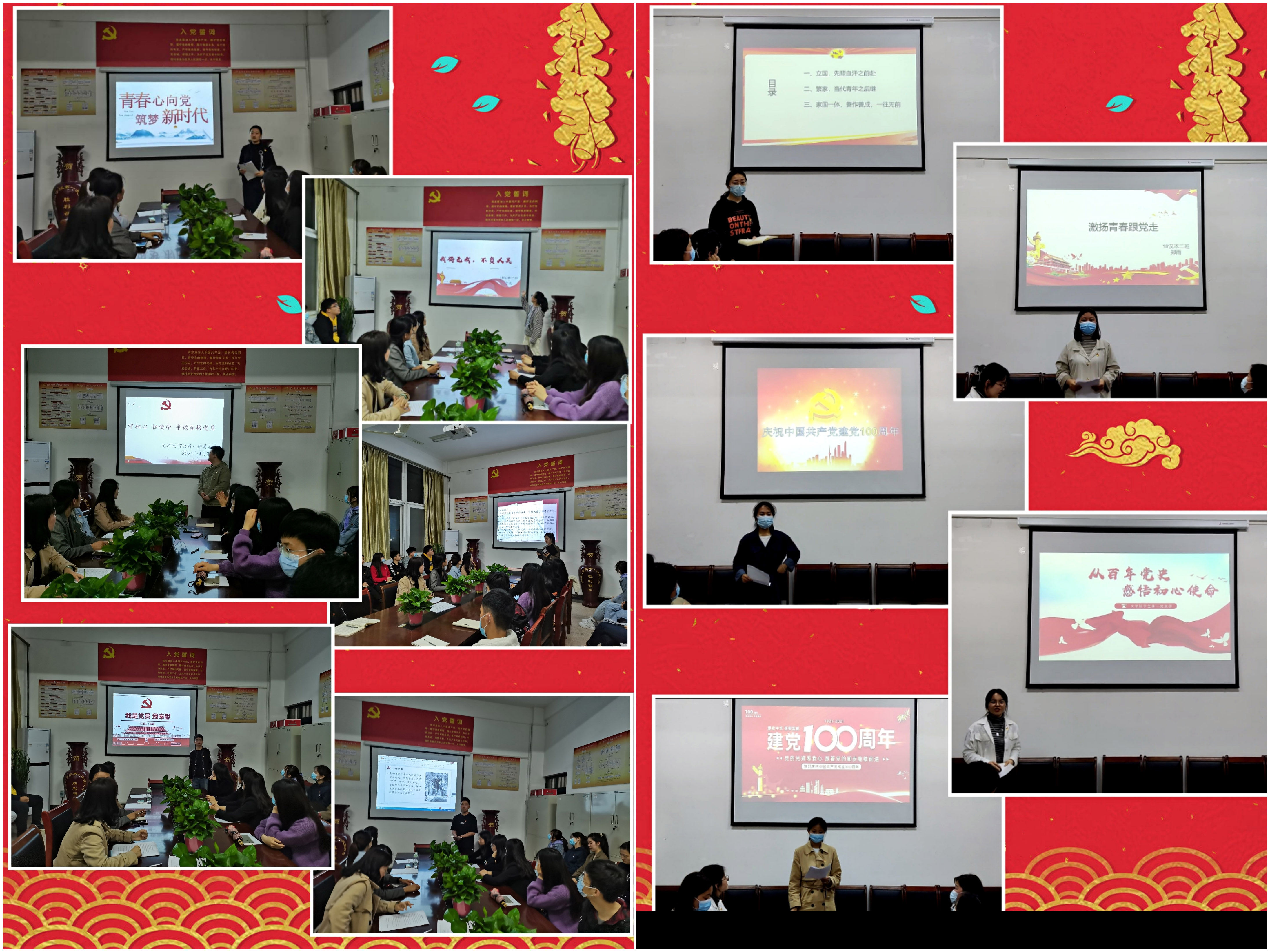 文学院党委按照校党委要求,牢牢扛起党建工作主体责任,主动研究教工党支部、学生党支部主题党日活动有关内容和时间安排,联系师生党员思想、工作、生活和作风建设实际,认真开展“党史学习教育”主题党日活动,不断增强基层党组织凝聚力向心力号召力,充分发挥文学院党委政治核心作用、党支部战斗堡垒作用和党员先锋模范作用,通过党史学习教育汲取智慧和力量,为推进文学院事业高质量发展提供坚强有力的政治保证!