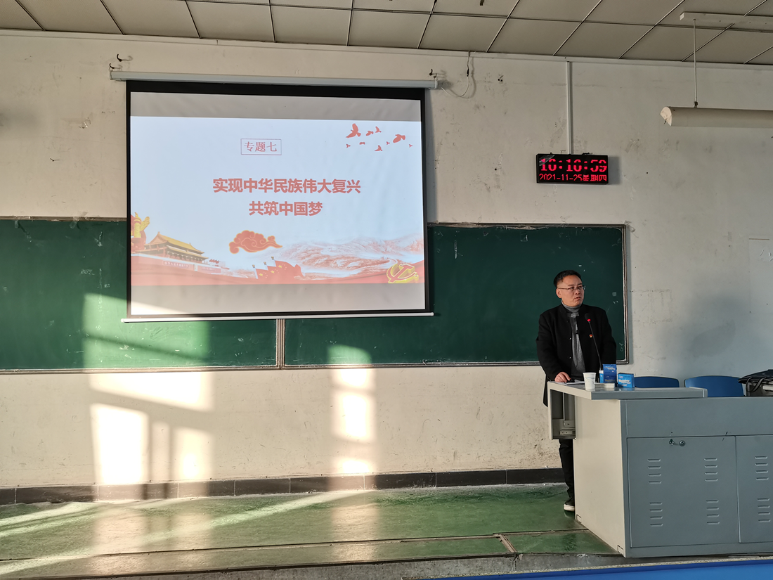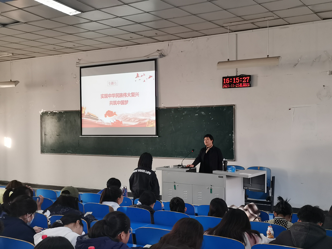 为全面贯彻落实《教育部关于加强新时代高校“形势与政策”课建设的若干意见》(教社科[2018]1号)和“平顶山学院2018版人才培养方案”等相关文件要求,2021年11月25日下午,文学院分别在2306、2406教室开展本学期“形势与政策”课第三讲,课程由文学院党委副书记李培斌、文学院副院长赵焕亭以及辅导员顾亚菲、张冰洁分别讲授,文学院2019级和2020级全体学生参与学习。