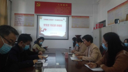 2021年11月11日下午,教工党支部在1422党建活动室开展“学党史、守纪律、讲规矩”主题党日活动,教工党员参加本次活动,主题党日活动由副院长、教工党支部书记王惠主持。