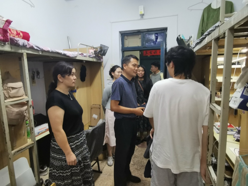 为深入贯彻校园安全管理有关要求,切实了解秋季学期开学返校学生的实际需求,9月1日晚,文学院党委书记申自强,党委副书记苏小玲,辅导员马继文、薛小品、张驰、张钊越、马懿琳及学生工作人员深入宿舍走访慰问秋季学期开学返校学生,为他们送去关心和祝福。