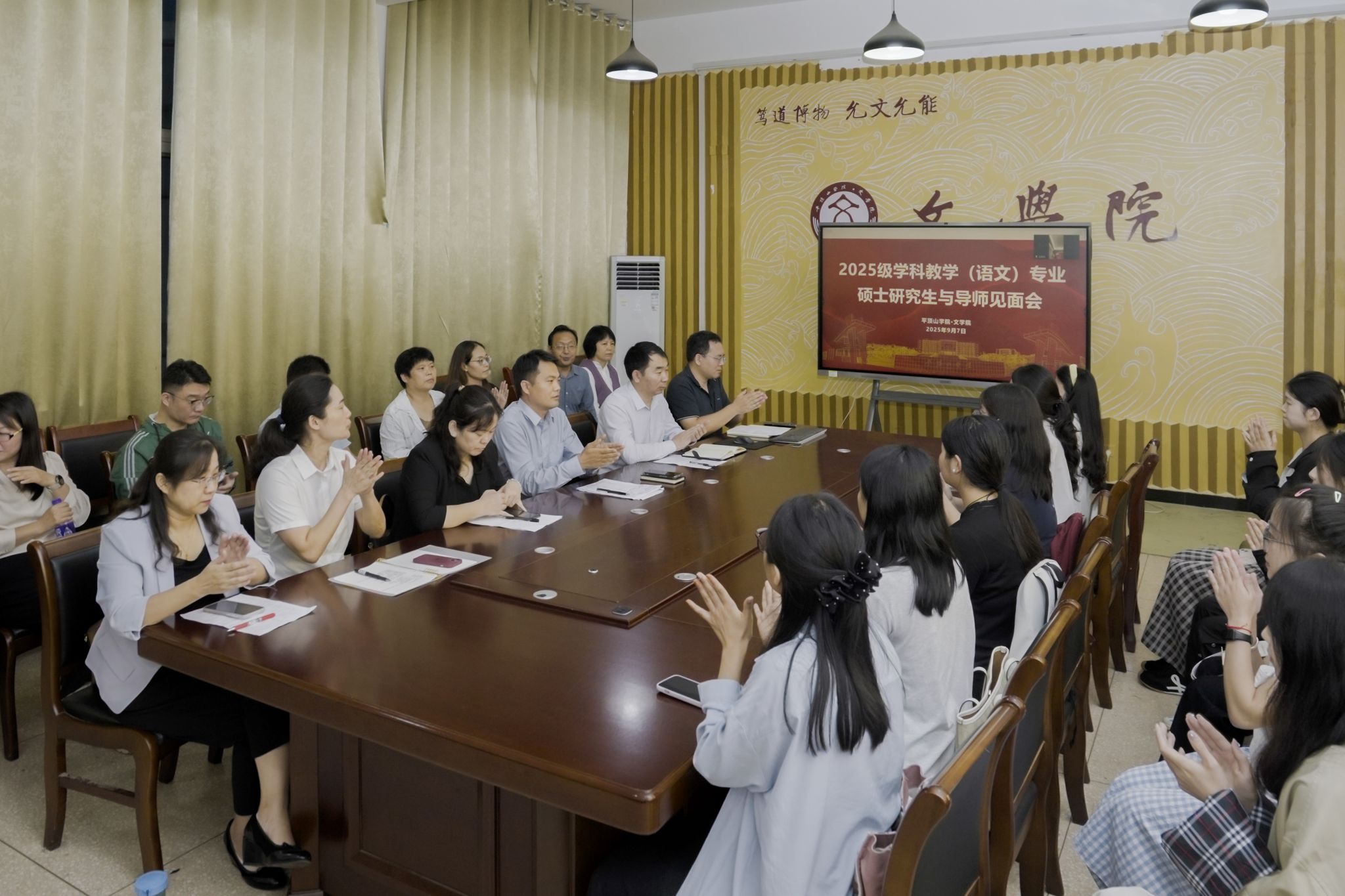 9月7日下午,文学院在1301会议室举行2025级学科教学(语文)专业硕士研究生与导师见面会。学院班子成员、研究生导师及全体2025级学科教学(语文)专业研究生参加活动。活动由文学院副院长杜彬彬主持。