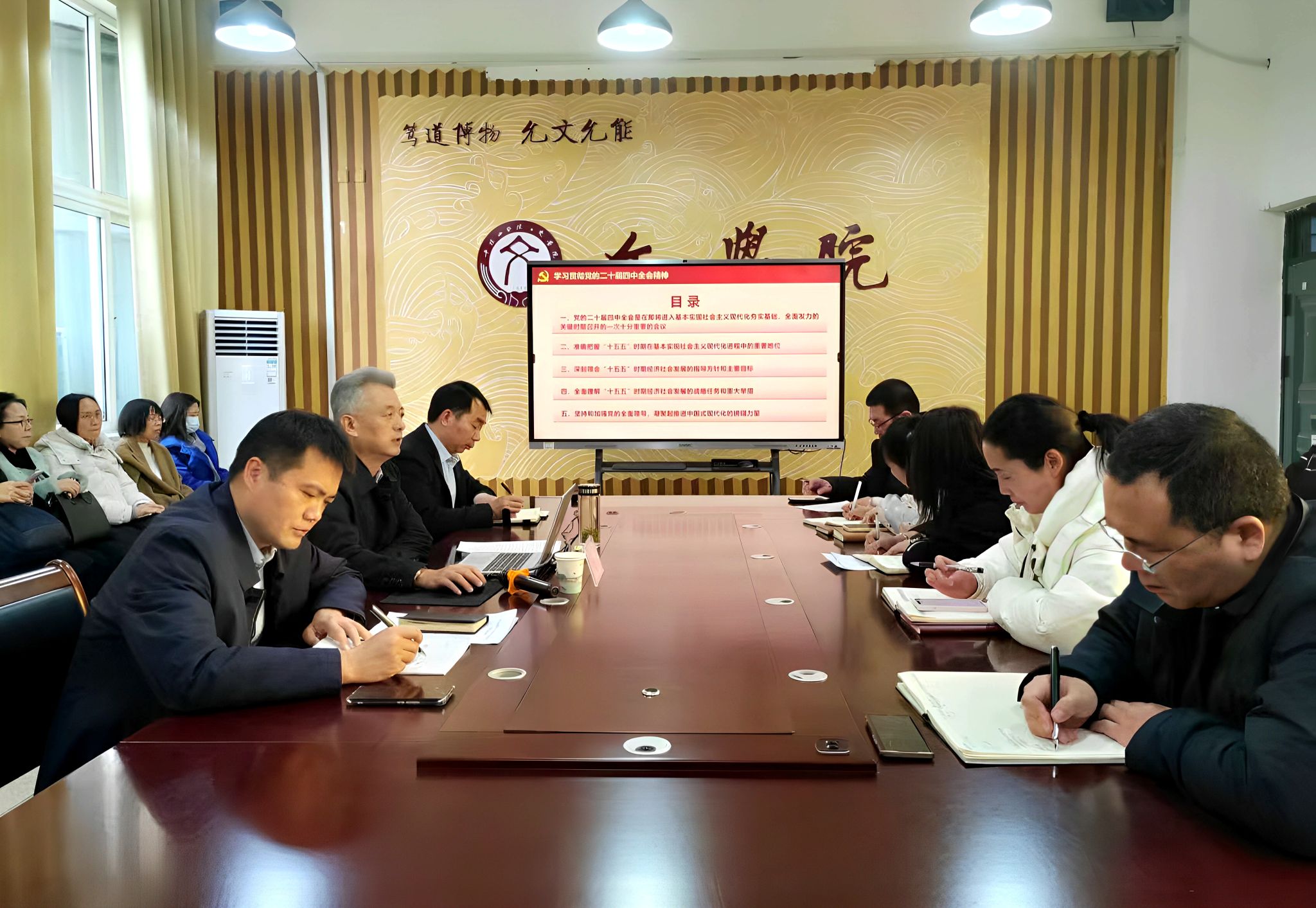 为深入学习贯彻党的二十届四中全会精神,感悟中国共产党人精神谱系的伟大力量,引导广大师生切实把思想和行动统一到党中央决策部署上来,按照学校党委统一部署,12月4日下午,校党委副书记许建辉在1301会议室为文学院师生宣讲党的二十届四中全会精神,宣讲会由文学院党委书记申自强主持。