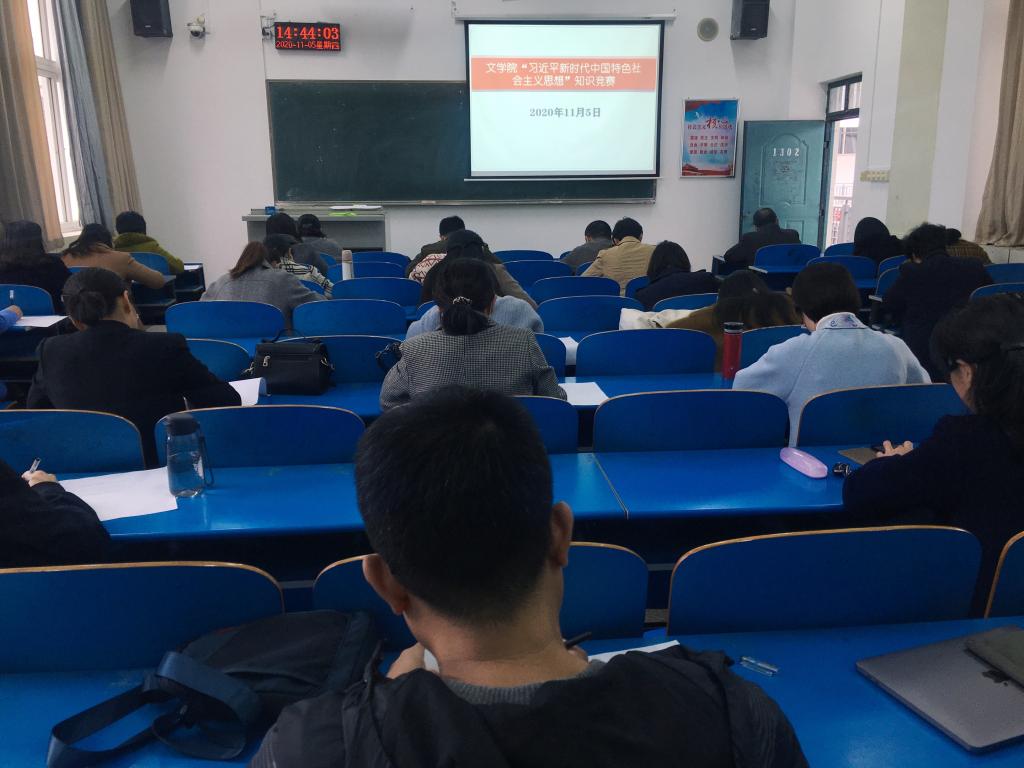 为推动文学院教职工学懂弄通做实习近平新时代中国特色社会主义思想,提高教职工政治理论学习的积极性,根据学校《关于在全校范围内开展习近平新时代中国特色社会主义思想知识竞赛的通知》精神,文学院分工会于11月5日下午在1302举办了教职工习近平新时代中国特色社会主义思想知识竞赛。