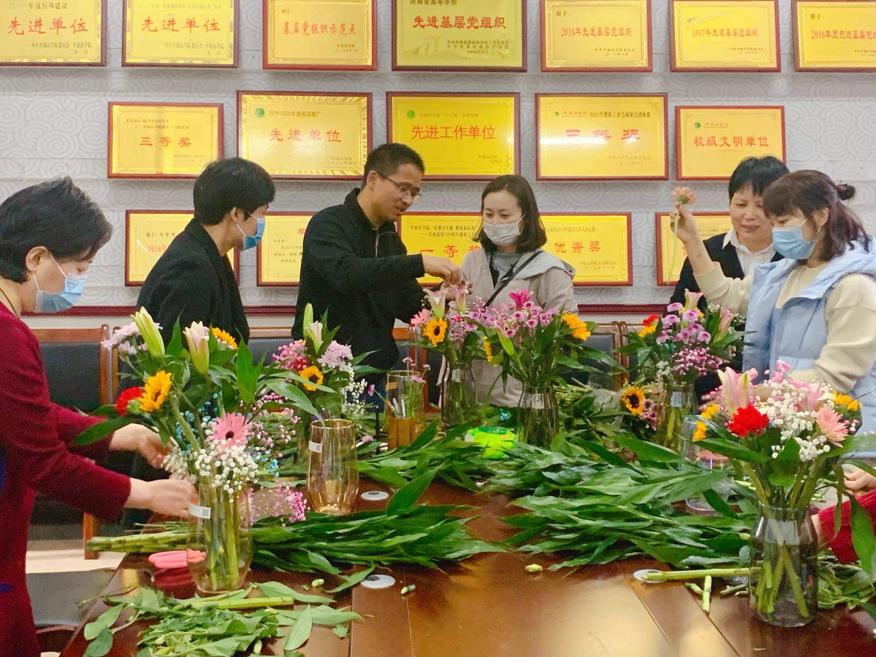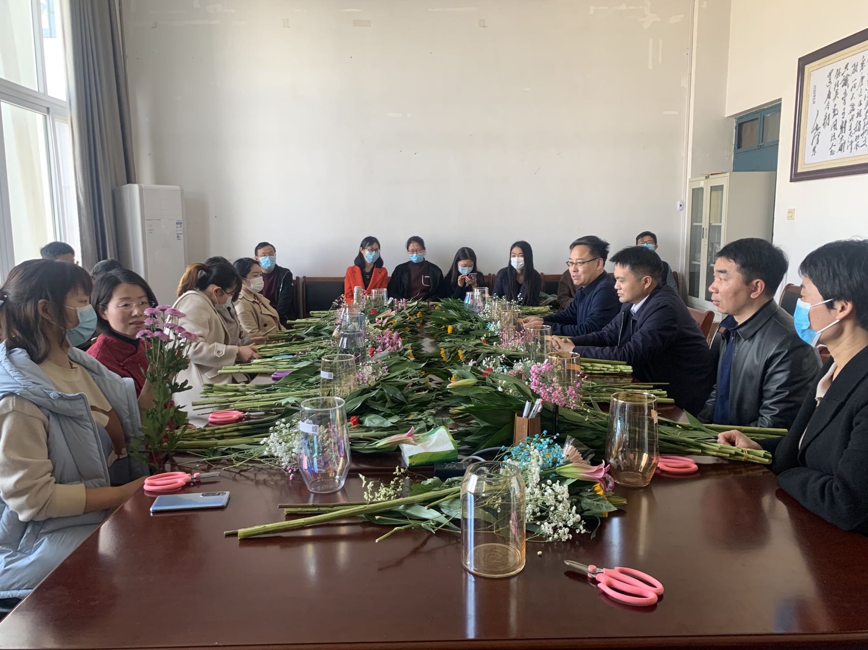 为响应校工会号召,丰富女职工的文化生活,增进教职工间沟通与交流,3月10日下午,文学院分工会在1321会议室举办主题为“做智慧女性,创美丽生活”的创意插花活动。文学院党政领导班子及全体教师参加活动。