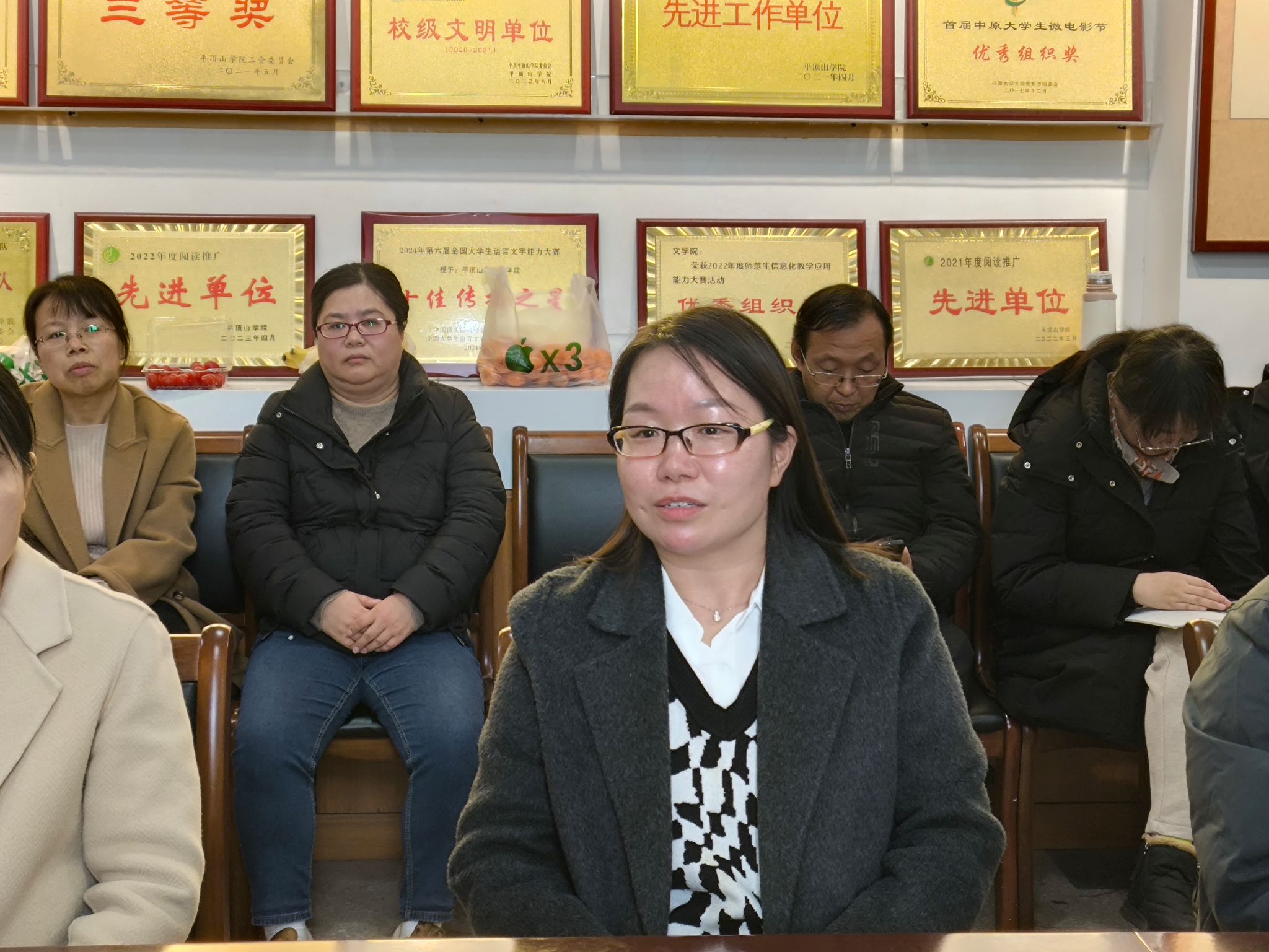 文学院党委书记申自强做了总结发言。他说,五位老师发言不蔓不枝,言真意切,大家都深有感触,深有感悟,令人深受启发,深受教益。刚刚结束的教育教学审核评估工作,学校获得了专家组的充分肯定和高度评价,认为我校打造了校地共同体的特色发展模式,创造了每二十年上一个新台阶的发展现象,涵养了“艰苦奋斗、自强不息、团结奉献、追求卓越”的平院精神,锤炼了一支面对困难“能创奇迹、善创奇迹”的干事创业队伍,闯出了一条中部欠发达地区非省会城市地方新建本科高校高质量发展、高水平建设之路。作为学校一员,我们都备受鼓舞,倍感自豪,也深感使命如山,重任在肩。文学院每一位教职工都要以学校顺利获批硕士学位授予单位、顺利接受教育部本科教育教学审核评估为契机,凝聚高质量加速度跨越式发展的信心和力量,知责于心,担责于身,履责于行,真心实意谋发展,真抓实干谋发展,齐心协力谋发展,以文学院一域之高质量发展为学校高水平建设贡献力量。