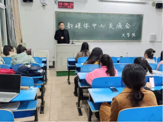 11月17日晚,文学院在1314教室举办新媒体中心工作交流培训会议。参加会议的有文学院党委副书记李培斌,以及团学会上一届宣传部成员、本届新媒体中心成员、各班宣传委员。会议由李丹阳主持。