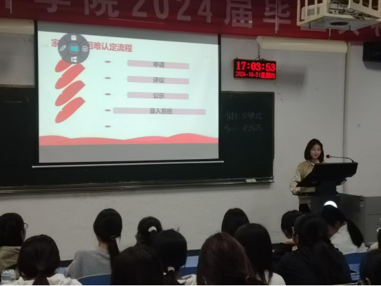 为深入贯彻落实国家资助政策,提升学生对资助体系的认知,10月31日,文学院在教学楼1407教室举办我为同学做实事——资助政策宣讲会。本次宣讲会由文学院学生会生活权益部负责人艾苗苗主持,参会同学包括各年级学生代表以及各班生活委员。