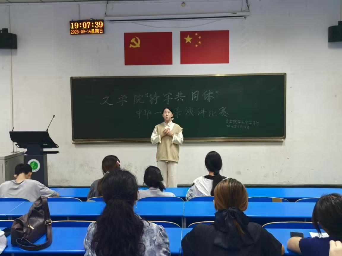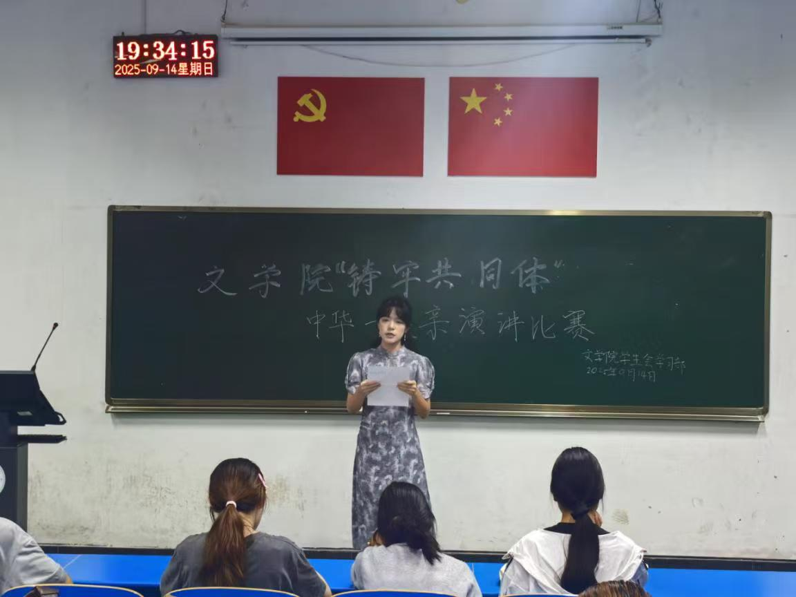 为深入学习贯彻习近平总书记关于加强和改进民族工作的重要思想,宣传贯彻中央、省委、市委民族工作会议精神,进一步铸牢中华民族共同体意识,推进中华民族共同体建设,推动新时代高校民族工作高质量发展,9月14日,文学院在1206教室组织开展了“铸牢共同体,中华一家亲”演讲比赛。