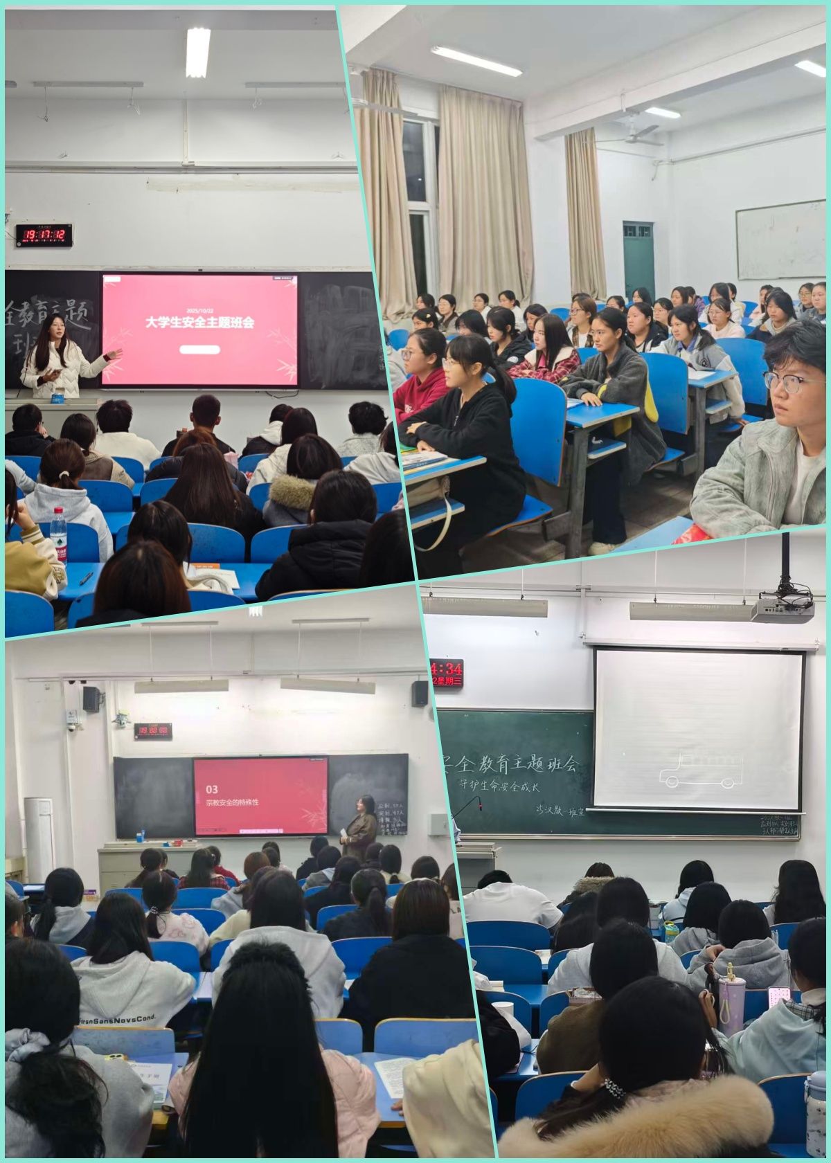 在班会上,各班负责人紧密结合大学生真实的日常学习生活场景,对网络安全、交通安全、心理健康、民族宗教等关键领域的问题进行深度剖析。同时,班会从防范个人隐私泄露的具体操作流程、保护个人财产安全的实用技巧,到维护心理健康的科学路径等多个维度,温馨提醒同学们提高安全警惕意识,为同学们在学校全方位、多角度保障自身全面安全提供了一套系统且具有可操作性的指导方案。