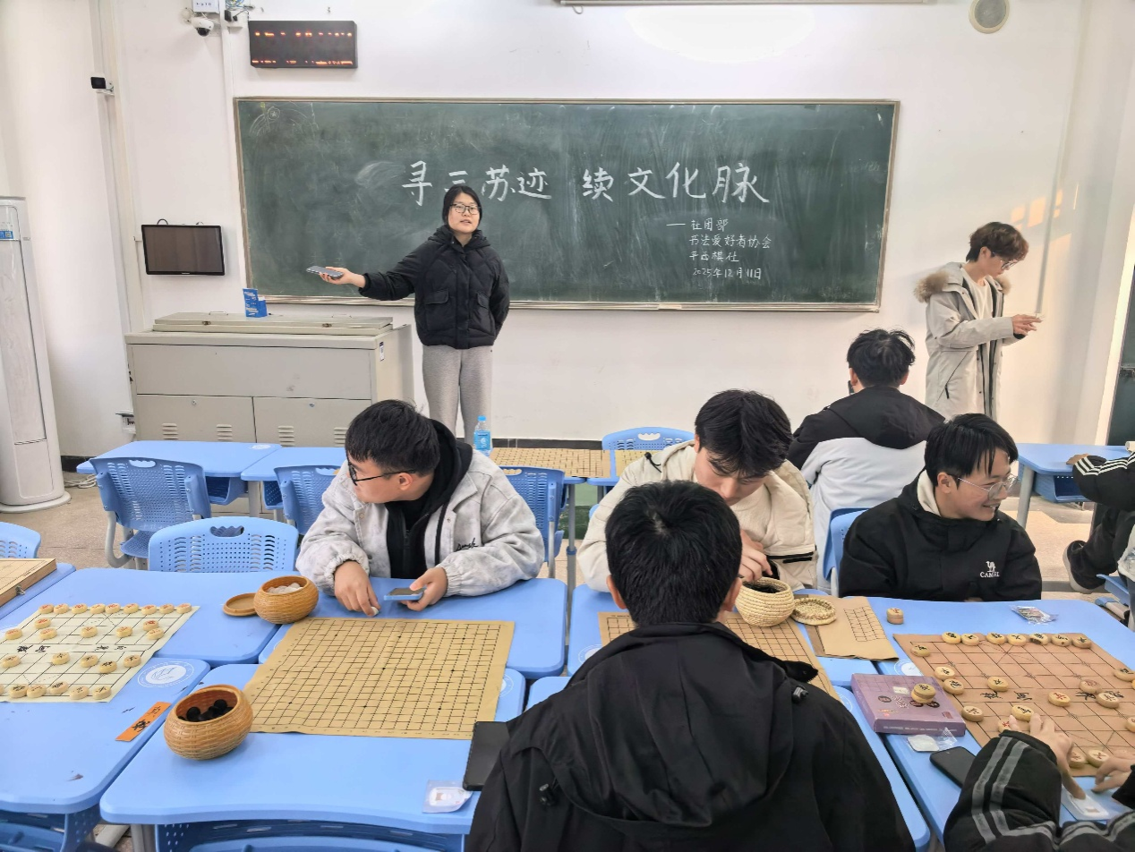 本次活动围绕“趣味互动+文化浸润”形式展开,设置三项体验内容,吸引众多同学参与。活动现场发放了“文化体验集章卡”,参与者通过参与活动收集印章,并可凭集章数量兑换相应纪念品。在“三苏风雅·飞花逐韵”活动环节,同学们以三苏诗词为主题展开飞花令对决,通过诗词体会三苏文化的内涵。在“三苏棋语·稚子学奕”活动中,工作人员结合三苏的棋事典故讲解围棋基础,同学们两两对弈,不亦乐乎。在“墨染三苏·诗藏笔底”环节,工作人员提供笔墨纸砚,让参与者可亲手书写“莫听穿林打叶声,何妨吟啸且徐行”等三苏名句,体验优美博大的书法艺术。