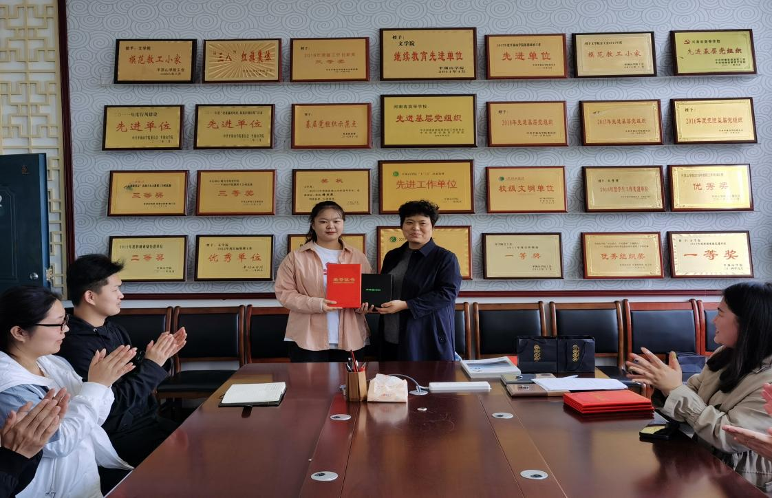 颁奖仪式上,文学院副院长赵焕亭及在场的专业教师分别为获得一、二、三等奖的同学颁发了奖品和获奖证书。其中,文学院2020级汉语言文学1班张佳慧的《年中的“五味”》获一等奖,文学院2020级汉语言文学2班苏莹莹的《忆年•寻味》、文学院2018级汉语言文学2班孟璐瑶的《爱》获二等奖,艺术设计学院2020级视觉传达设计1班左欣欣的《我眼中的春节》、经济管理学院2019级会计学1班郭黎金的《年味小记》、化学与环境工程学院2020级环境生态工程1班关展博的《三代人的年》获三等奖。校外征文中,河南地区翟红果的《过年旧事——当枱》、谢松林的《新年里的歌谣》,湖北地区李仁学的《香囊》获优秀文章。
