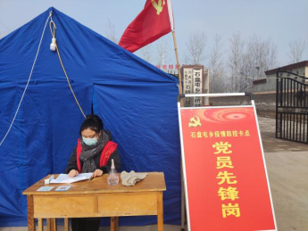 风是冷的,心是热的。赵一丹同学在安阳市内黄县石盘屯乡石桥村卡点进行值班工作,负责登记来往出入人员,并进行体温测量和汇报工作。