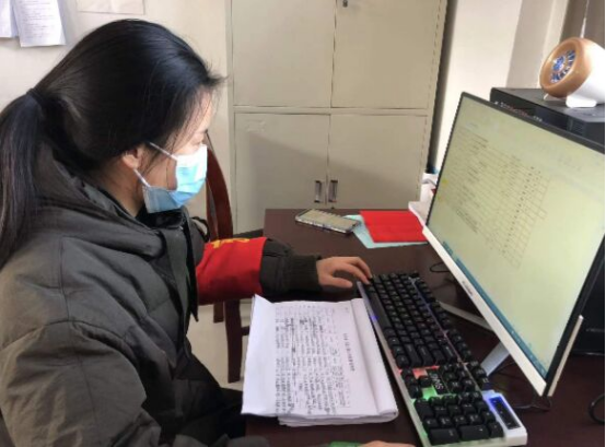 刘晓波同学回到家乡后,依靠掌握的电脑办公技能在乡镇的疫情防控指挥中心进行材料整理工作。