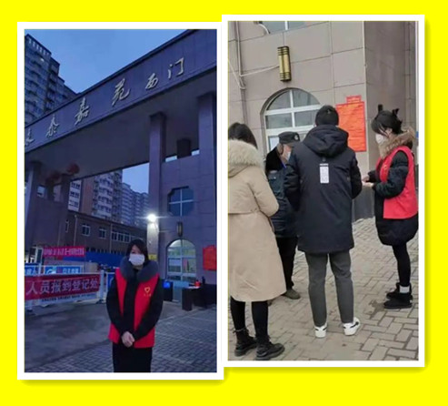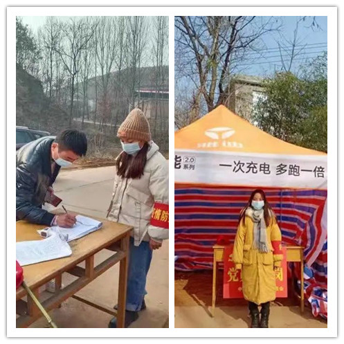寒假期间,刘瑶瑶同学在河南洛阳嵩县主动报名参加抗疫志愿活动,负责查看健康码,行程码以及测量体温等工作。