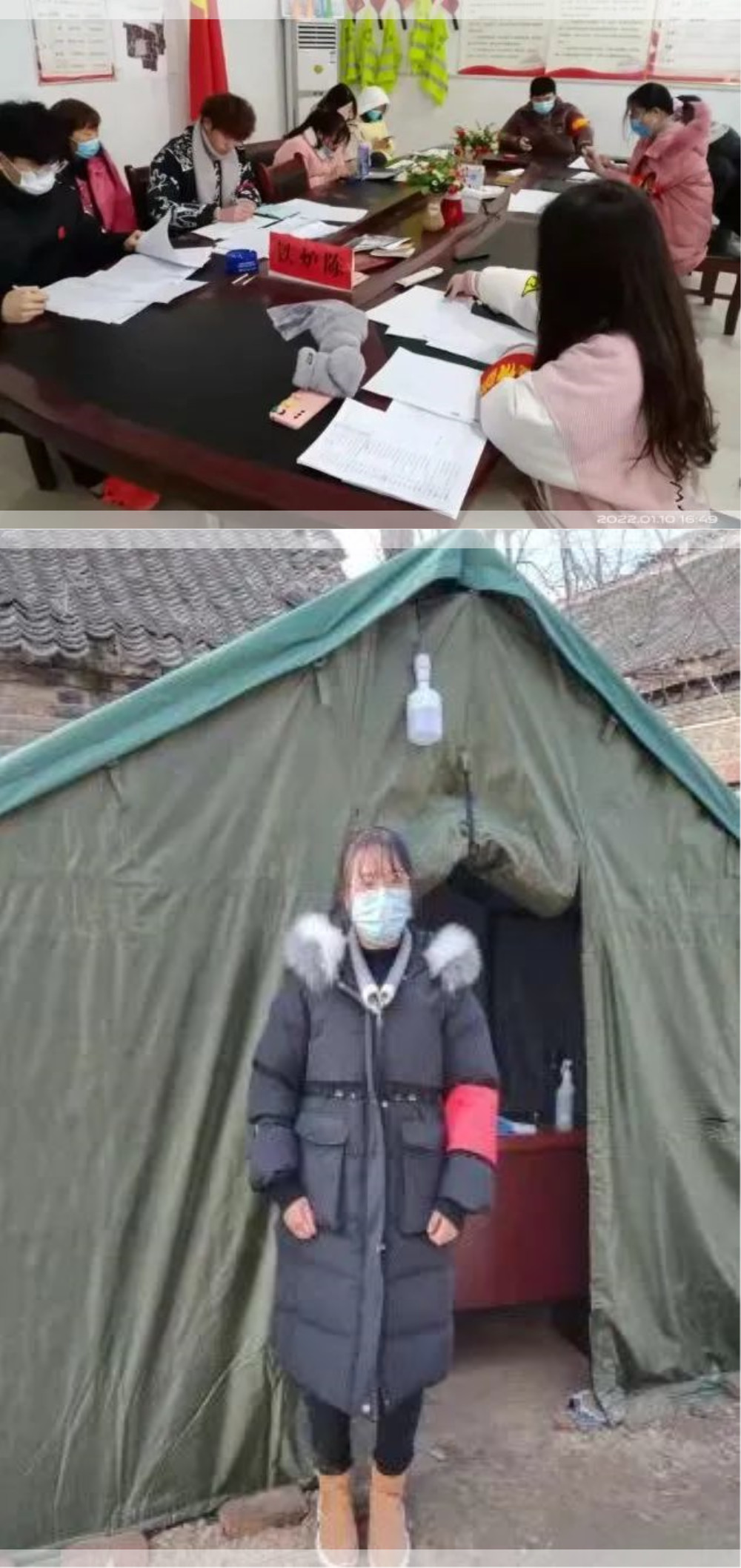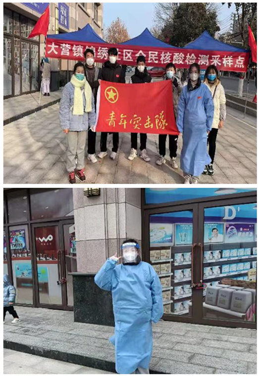 寒假期间,陈璐瑶同学积极参与家乡抗疫志愿活动,负责维持核酸检测现场秩序,对进出人员进行信息登记,对本村常住人口和外出务工人口基本信息进行普查等工作。