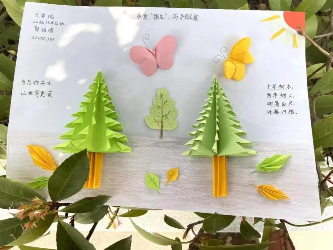 为迎接植树节的到来、推进生态文明建设、营造良好的校园环境、提升同学们亲近自然、重视环保的思想意识、激发同学们的创意想象能力,3月5日下午,文学院团学会文体部举办“指尖存心意,巧手送翠来”主题活动,活动由志服部协办。