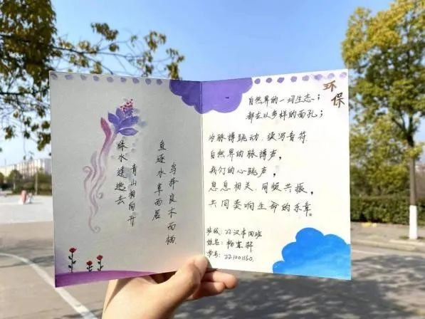 同学们将所要表达的想法寄托在贺卡之上,向我们展示了可持续发展的长远意义以及生态保护对于我们当代生活的重要性与紧迫性,号召我们行动起来共同保护生态环境。