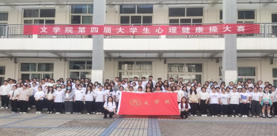 为深入贯彻落实习近平新时代中国特色社会主义思想和党的二十大精神,进一步做好我院大学生心理健康教育工作,丰富学生校园文化活动,培养学生积极阳光心态,提高心理素质,5月11日下午,文学院在1号教学楼天井举办第四届大学生心理健康操大赛。文学院党委副书记李培斌、团委书记马继文、团委副书记李丹阳、组织员薛小品、辅导员张驰老师及主要学生干部出席本次活动。本次大赛共20个班级1000余名学生参加此次活动。
