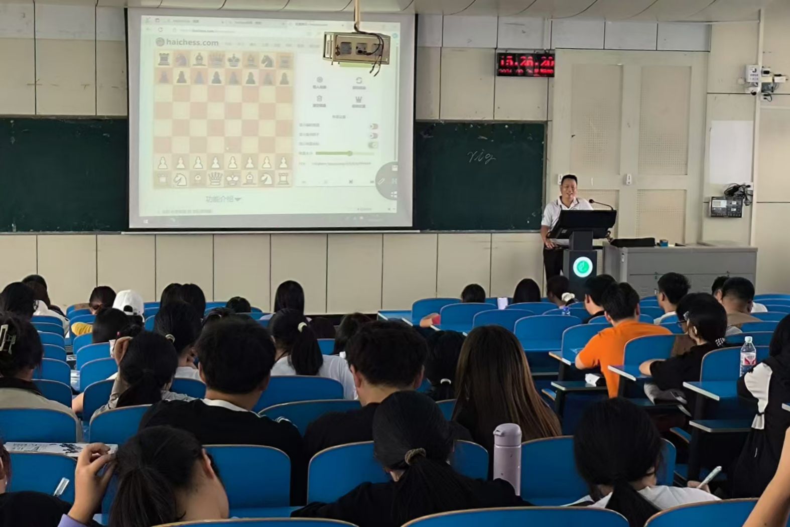 为了丰富我校学生课余文化生活,提高大家的逻辑思维能力和策略规划能力,9月26日下午,我院学生社团平西棋社举办2024年国际象棋教学推广活动,邀请平顶山市鑫奥棋院国际象棋主教练李全欣担任主讲。平西棋社成员及我校棋牌爱好者200余人参加了活动。