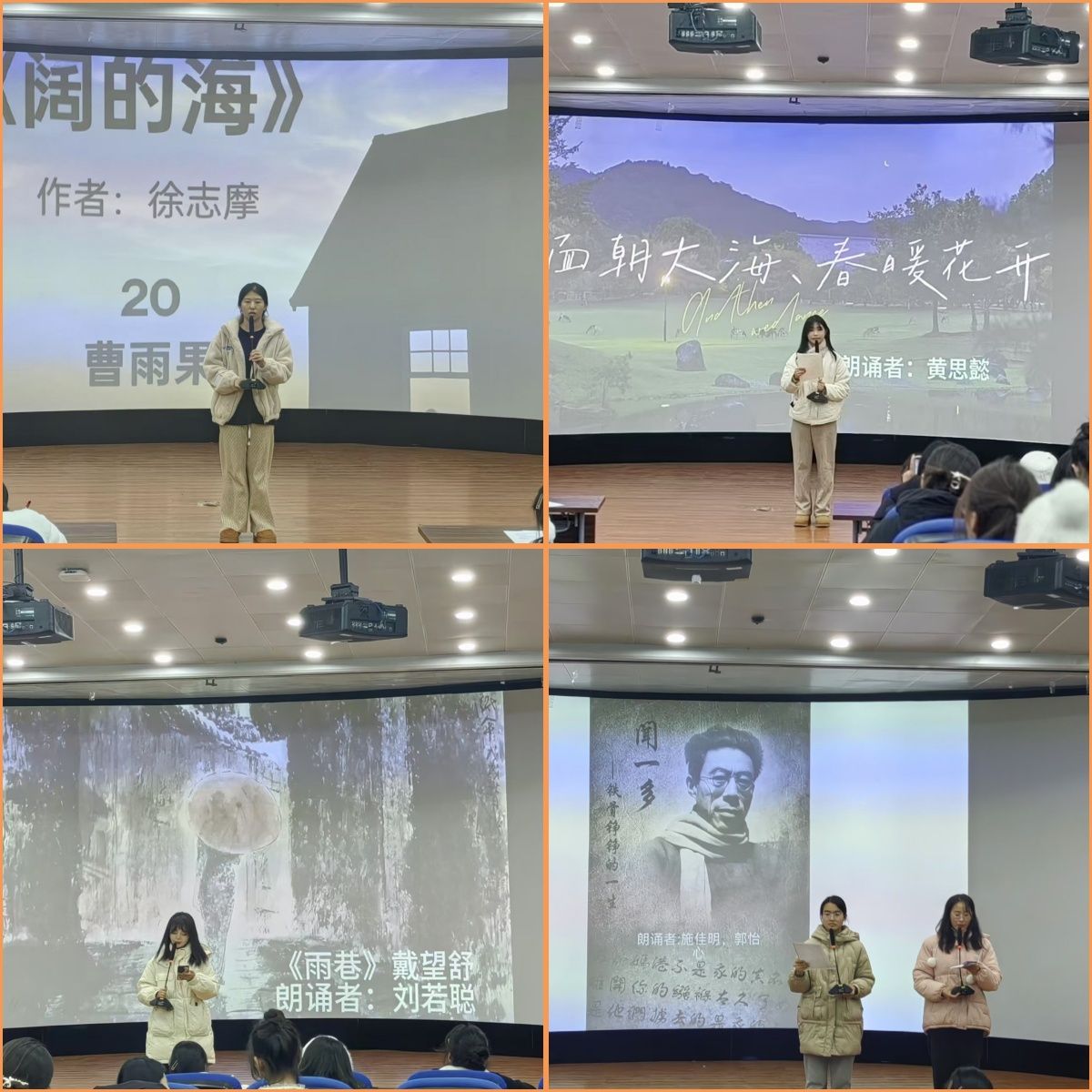 本次活动分初赛、决赛。初赛于11月20日举行,经过选拔,34个节目进入决赛。当天的决赛中,选手们朗诵了中国现当代文学史上的经典诗歌作品《我是青年》《致橡树》《老父亲》《面朝大海,春暖花开》《雨巷》等。这些作品既演绎出了青年的自信昂扬,宣传了正确的爱情观,也展现了如山的父爱。比赛现场,选手们或一人独诵,或两人合诵。他们在朗诵中时而意气风发、高亢有力,时而饱含深情、低沉哀婉,在抑扬顿挫中生动展示了诗歌的艺术魅力,赢得了现场观众的阵阵掌声。