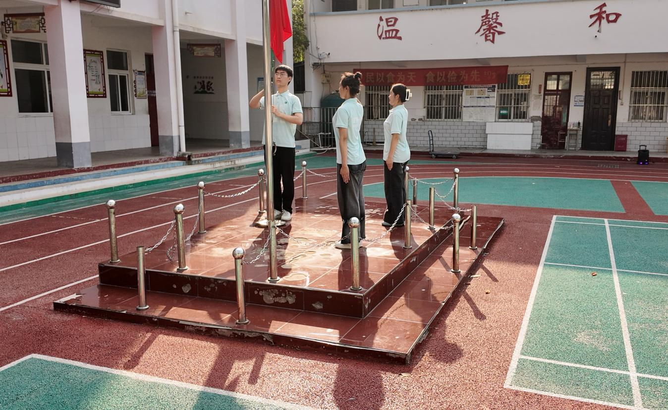 晨光熹微,八点半的朝阳温柔洒落。在这个镌刻着民族记忆的特殊日子里,鲁山县土门第二小学的校园里,小朋友们与文学院“数字引擎,智赴乡村”乡村振兴促进团成员们精神抖擞,怀着无比崇敬的心情齐聚国旗台前。随着团长王洁“升国旗,奏唱国歌,全体行注目礼”的指令,激昂雄壮的国歌响彻校园,鲜艳的五星红旗在晨光中冉冉升起,迎风舒展。全体师生庄严肃立,齐声高唱国歌,铿锵有力的歌声中,饱含着对革命先烈的深切缅怀与崇高敬意,激荡着浓浓的爱国情怀。