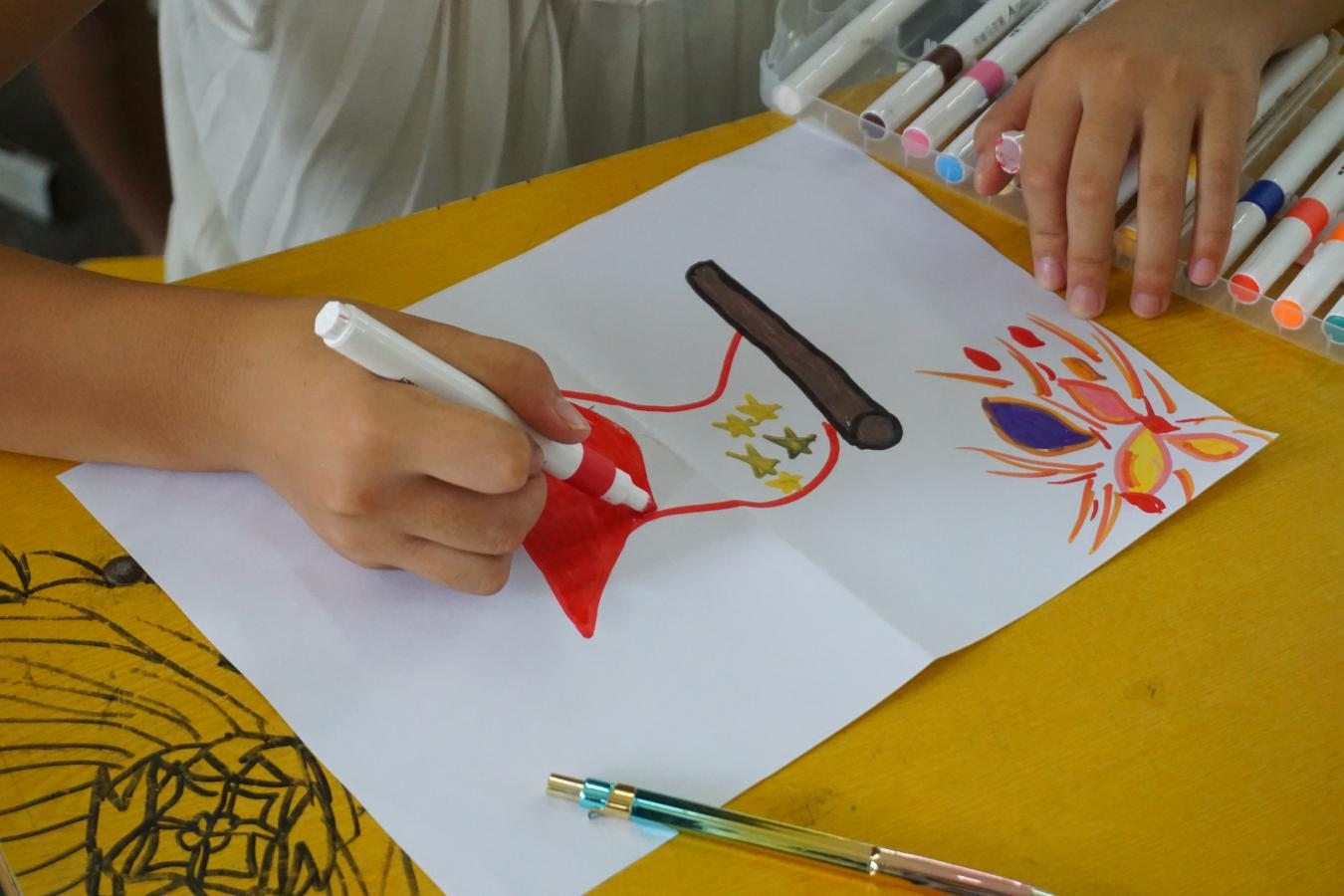 文艺支教组成员穿梭于课桌间,时而俯身指导构图技巧,时而对新颖创意竖起大拇指,遇到卡壳的“小画家”,便耐心讲解示范。在温暖鼓励与悉心指导下,一幅幅充满童趣的作品陆续诞生,稚嫩的笔触虽显青涩,却将爱国情怀诠释得淋漓尽致。