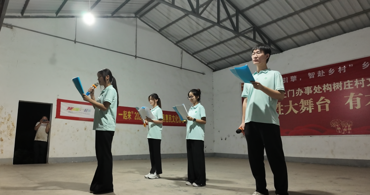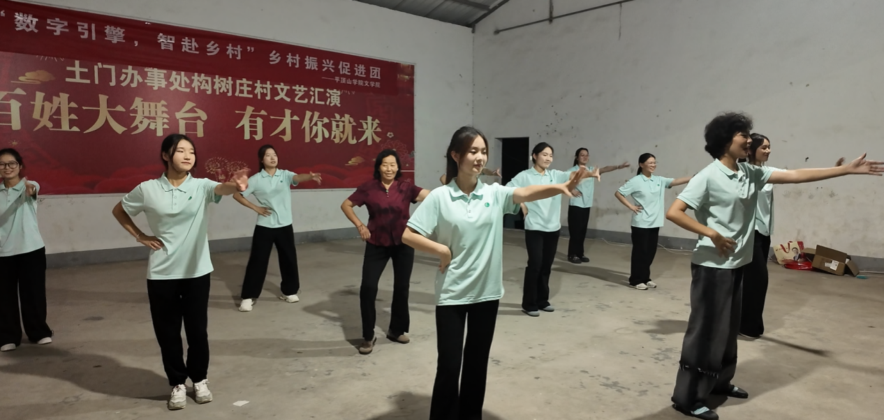 7月9日晚,平顶山学院文学院“数字引擎,智赴乡村”乡村振兴促进团在鲁山县构树庄村举办主题文艺汇演。本次演出以“数字赋能促振兴 文艺共筑乡村梦”为主线,12个精心编排的节目串联起十天实践中的感动与思考,最终凝练成一场充满乡土气息的艺术盛宴。