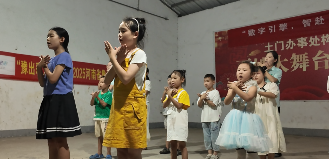 此次演出巧妙融合传统与现代元素,既有豫剧《当干部就要能吃亏》《我坚决在农村干他一百年》,也有广场舞、养生功等群众喜闻乐见的表演,赢得阵阵喝彩。汇演尾声,支教组改编的《纪念》缓缓响起。他们将十天实践中与小朋友相处的鲜活经历、对这段回忆的眷恋融入歌词,琴键与歌声交织成深情的赞歌,既是青年学子对乡村热土的真挚告白,也为此次“三下乡”实践画上了充满希望的句点。这场星光下的演出,既是实践成果的集中展示,更是青年智慧与乡土文化碰撞的生动见证。