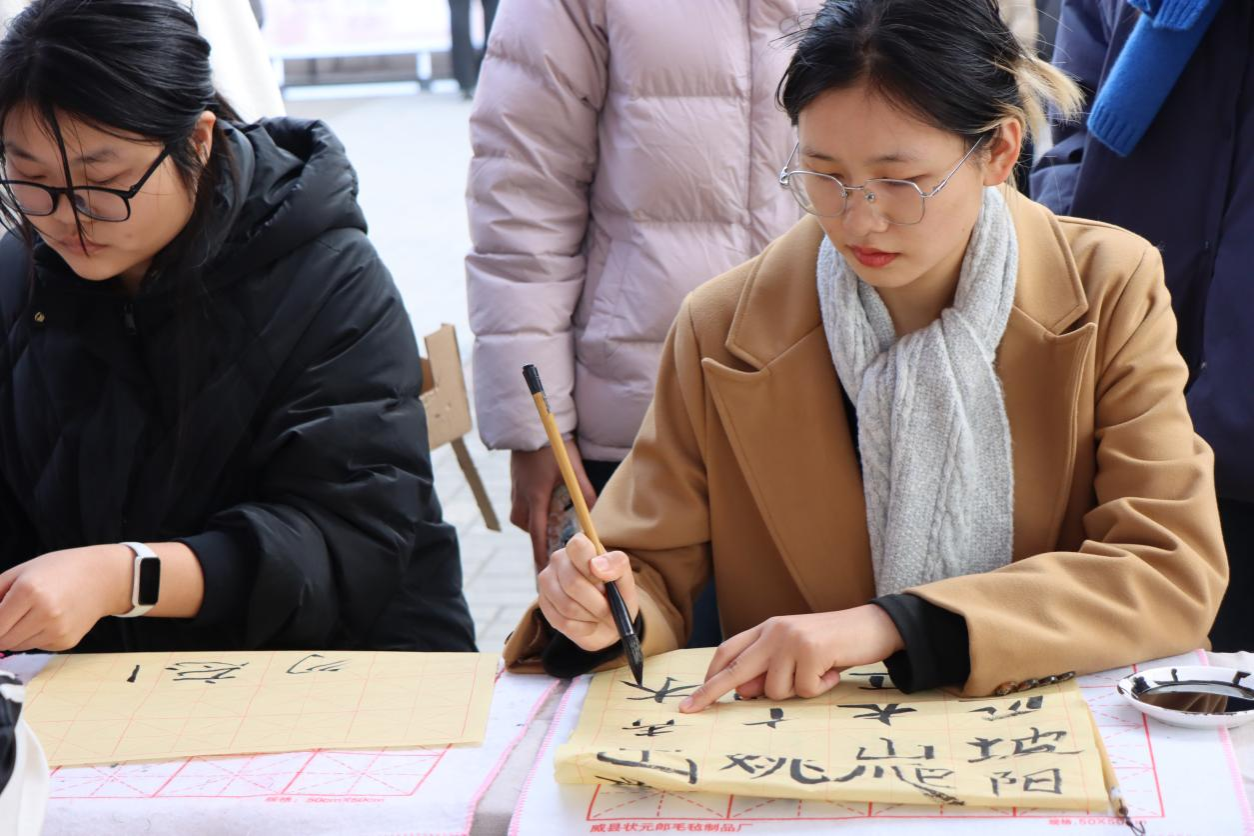 12月9日,国旗护卫队举行了庄严的升旗仪式,青马学员及学生代表280余人参加。梁若雨同学进行国旗下演讲,重温“一二·九”运动历史;周思彤同学以诗朗诵展现革命青年的英勇气概,号召新时代学子铭记历史、勇担使命。同日,校团委在扇形广场举行了“青春铭记‘一二・九’,笔墨声影铸初心”主题活动,文学院书法爱好者协会的同学们以笔抒怀,现场挥毫,开展了“笔落山河”书法作品展,书写青春壮志;星火筑梦社团的同学们开展“观史明志”图文匹配活动,带领大家回顾革命峥嵘岁月;书画协会的“指尖凝誓”互动吸引众多学子驻足,共同绘制“信念之树”;学生社团联合会“赤韵润心”活动通过红色诗歌接龙、革命人物故事讲述等形式,唤起同学们对先辈奋斗历程的深切追忆。