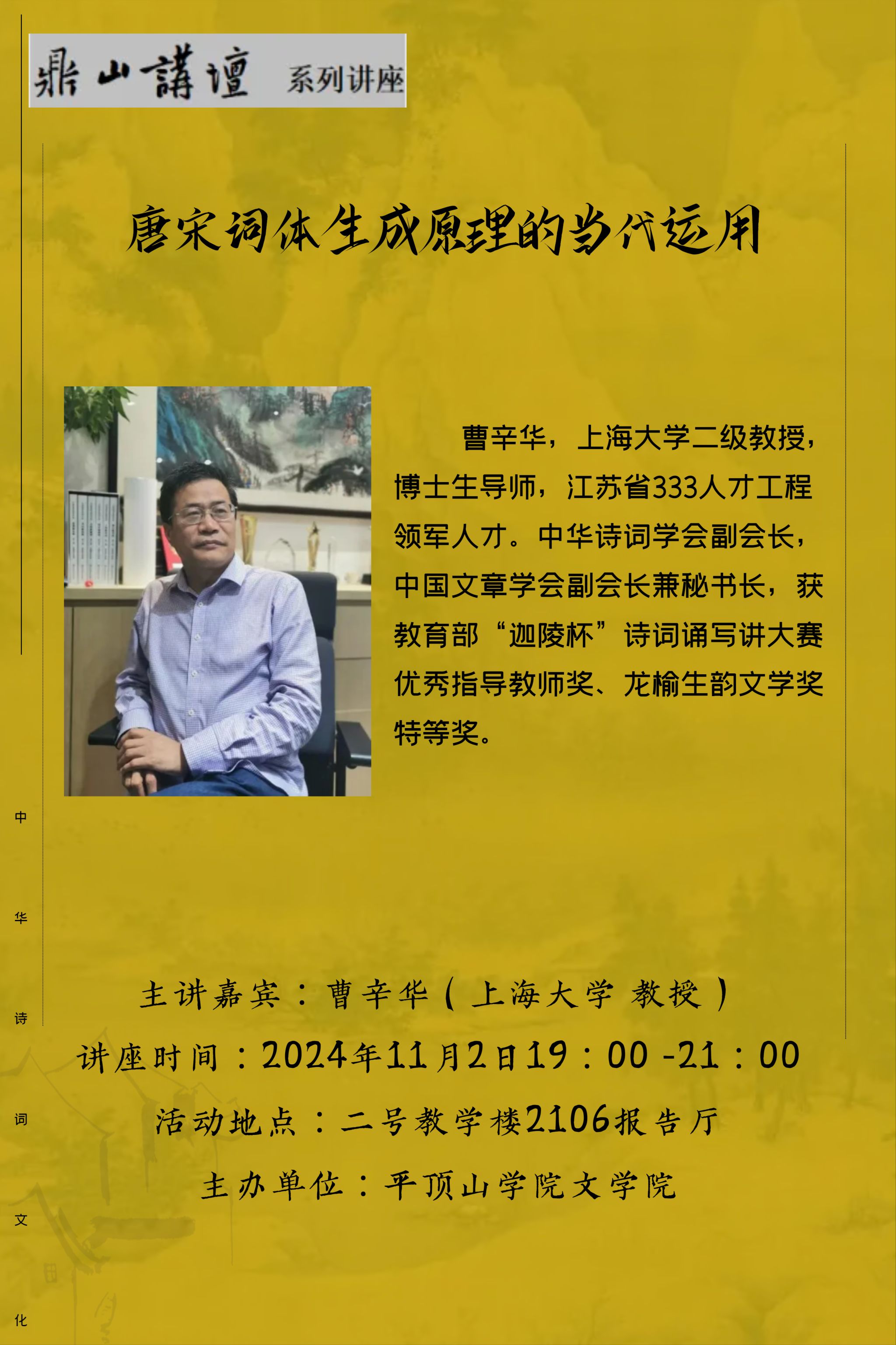 “鼎山讲坛”系列讲座预告 | 11.2 曹辛华:唐宋词体生成原理的当代运用