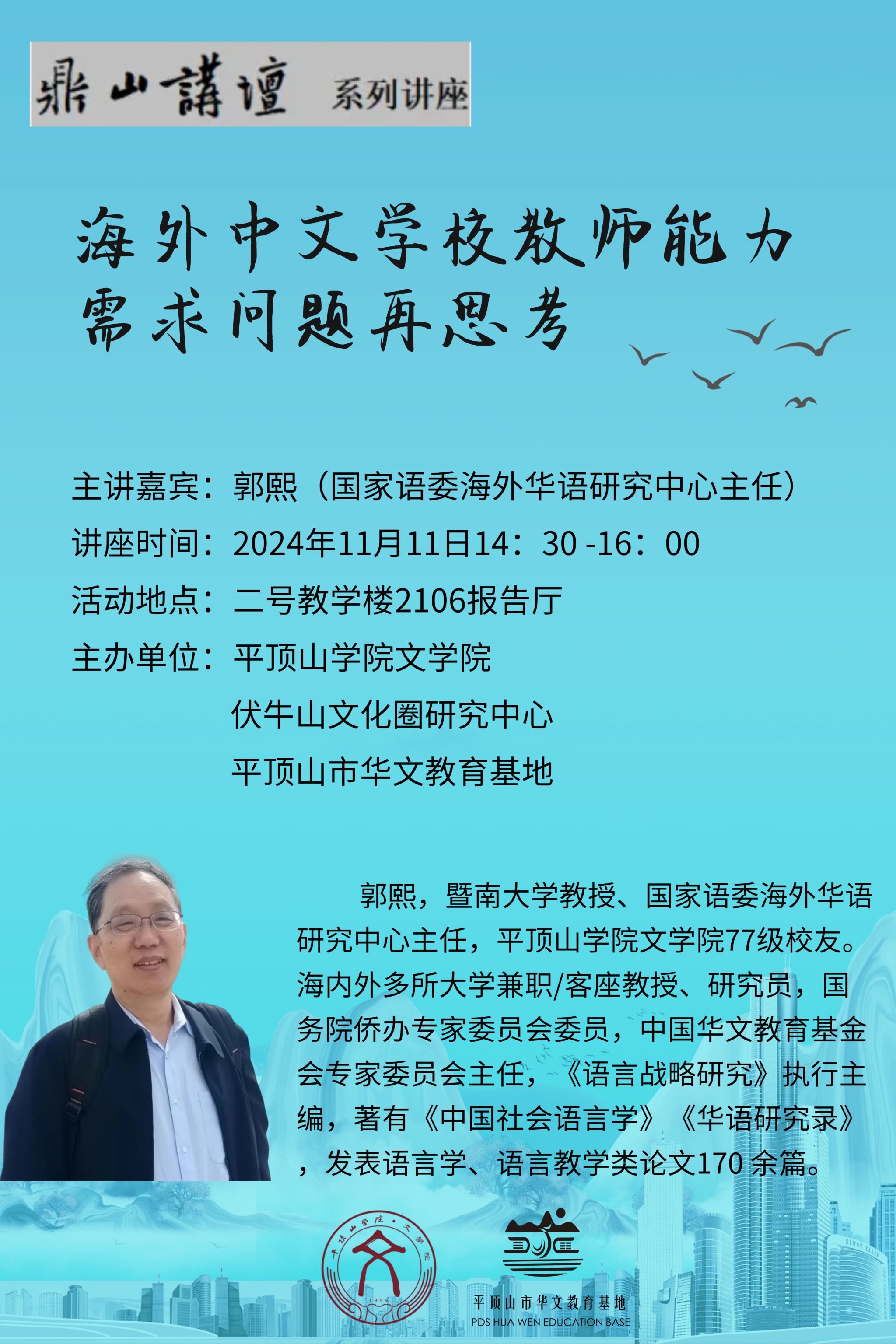 “鼎山讲坛”系列讲座预告 | 11.11 郭熙:海外中文学校教师能力需求问题再思考