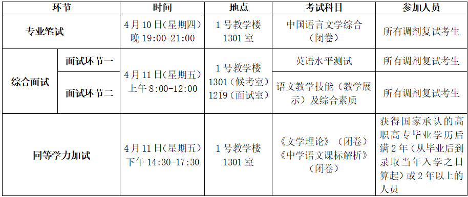 (一)我院拟接收调剂专业为学科教学(语文)(045103),具体调剂缺额信息以研招网调剂系统公布为准。