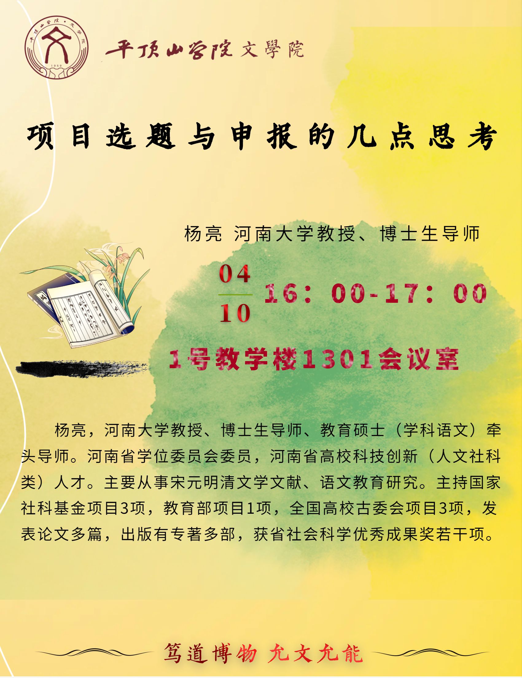 教师发展系列讲座预告 | 4.10 杨亮:项目选题与申报的几点思考