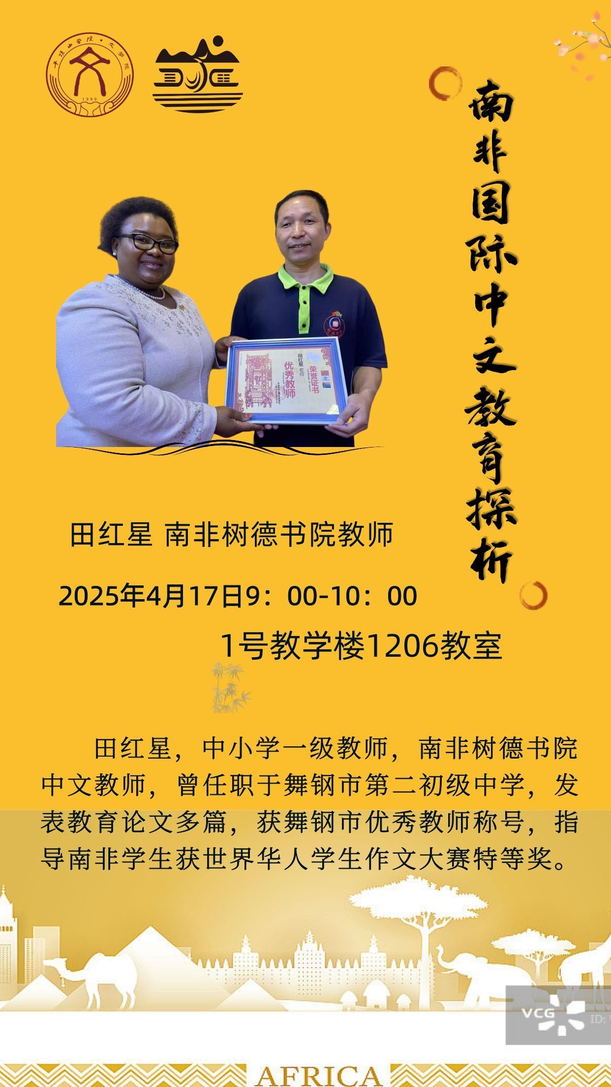 教育见习专家谈 | 4.17 田红星:南非国际中文教育探析