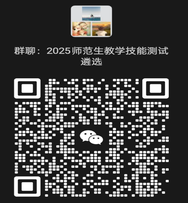 三、报名形式:有意向者请加入“2025师范生教学技能测试遴选”微信群(二维码见下方截图,二维码9月24日过期),后续通知群内发布。