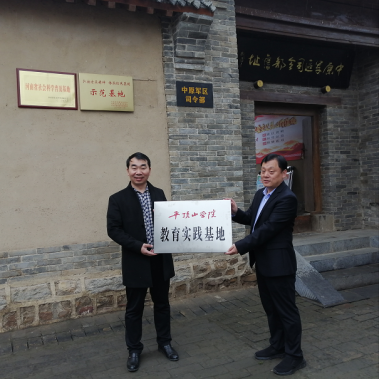 签字仪式结束后,孙振杰一行在郭书东的带领下赴北张庄村,参观中原军区暨中原野战军司令部旧址纪念馆。孙振杰代表我校为纪念馆颁授平顶山学院教育实践基地牌匾。