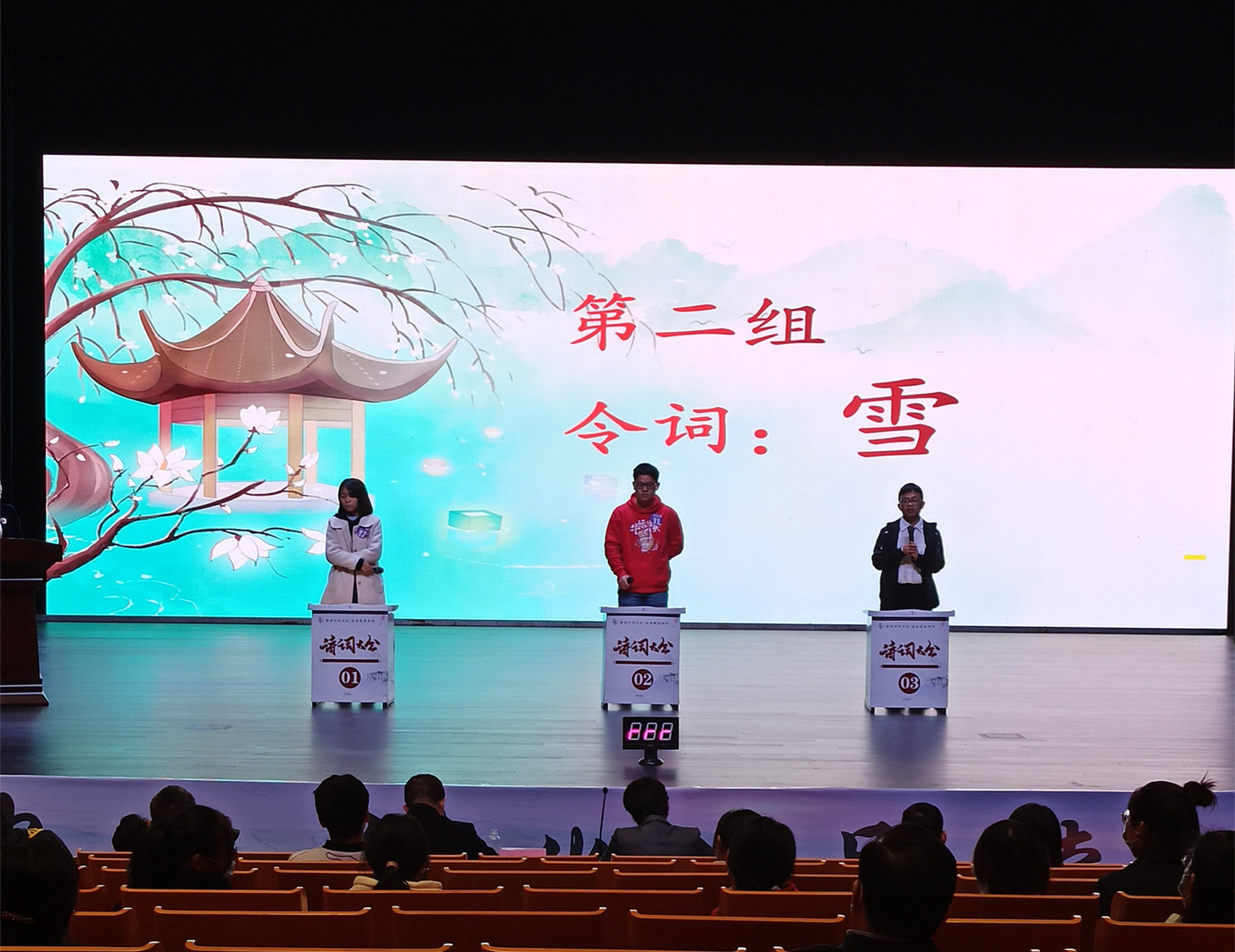 十月的南阳秋风肃杀、温度骤降,仍然阻挡不了各位选手参加比赛的热情。经过各地市、各单位的初赛复赛选拔,600多名选手齐聚南阳决赛现场。此次总决赛,各组别进行四个环节比赛,即“大浪淘沙”“月宫折桂”“飞花令”和“诗画中原”。来自平顶山学院的王镜婷同学在第一关以92分的傲人成绩击败了来自省内其他高校的一大批诗词达人,成功晋级下一轮。“时人不识凌云木,直待凌云始道高”,出自唐代诗人杜荀鹤《小松》的诗句令王镜婷同学在“月中折桂”环节中击败其余同组选手,成功进入飞花令环节。由于上台过于紧张,遗憾止步于“飞花令”环节,王镜婷最终获得了2021年河南省诗词大赛一等奖,并将于2021年10月底再赴南阳,参加中央广播电视总台中国诗词大会面试选拔赛。