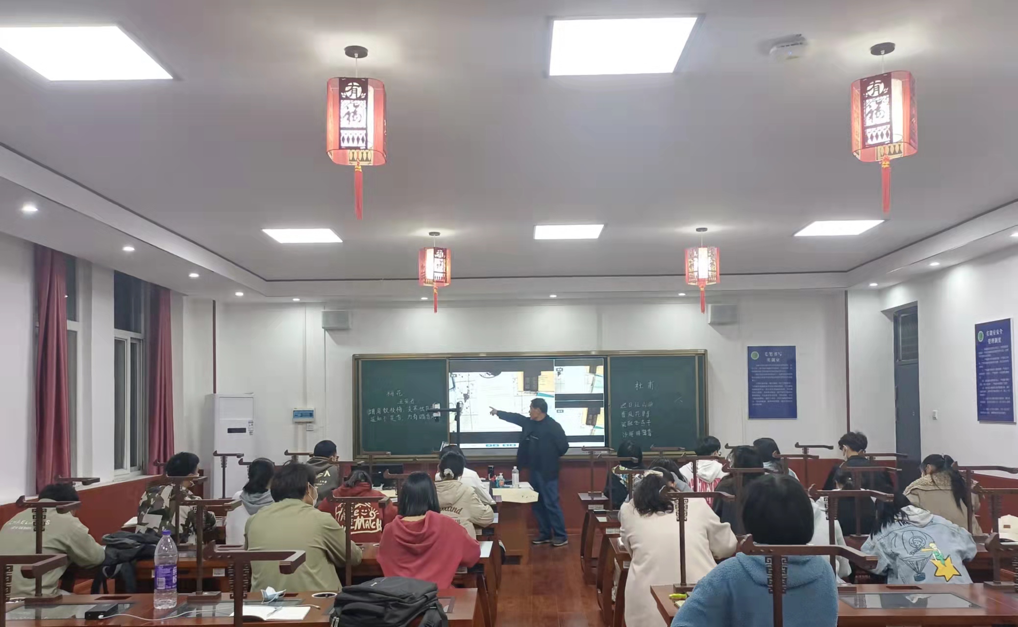3月30日晚,已进行三次的文学院第二课堂“诗词鉴赏与创作”在艺术楼502再次开讲。退休多年还继续教书育人的老教师郑黎阳担任主讲,30多名我校各专业一年级、二年级学生齐聚一堂,共赏经典。
