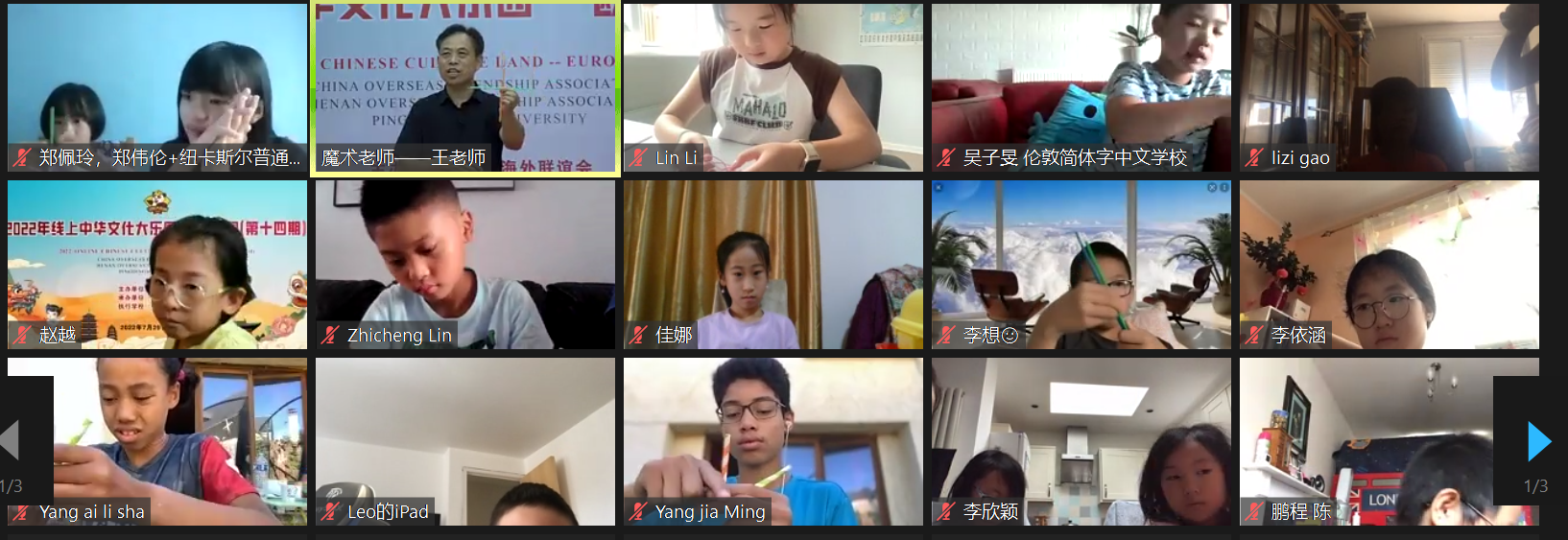 至此,线上“中华文化大乐园——欧洲园”的课程时间已进行过半。一张张认真听讲的可爱笑脸、一件件凝聚着创造力的作品、一幅幅快乐舞扇的课程截图,生动诠释了大乐园“在快乐中学习,感受中华文化”的初衷。在王献坡老师、房峰老师、杨小玉老师、李翔老师以及崔嘉美老师风趣幽默的指导下,大乐园的课堂变成了极富趣味性、启发性和创造性的立体多元互动空间,学员们沉浸其中,领略着中华文化的无穷魅力,对当代中国的了解与热爱也在不断加深。我们期待学员们能在探索中华优秀传统文化的旅途上,收获更多惊喜和美好!