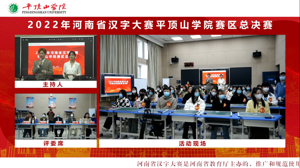 3月2日,由文学院承办的2022年河南省汉字大赛平顶山学院赛区选拔赛在图书馆203教室举行,来自全校20多个专业的36名选手参加比赛。本次比赛邀请了伏牛山文化圈研究中心主任、新闻与传播学院副院长段纳教授、新闻与传播学院陈建裕教授、文学院语言教研室专业教师卢淑芳、刘亚科、刘春萍担任评委。2022年河南省汉字大赛平顶山学院赛区选拔赛因疫情推迟到今年上半年举行,为了提升大赛的影响力,大赛组委会联合河南巽视达传媒有限公司,首次采用线下比赛,线上直播的方式进行。