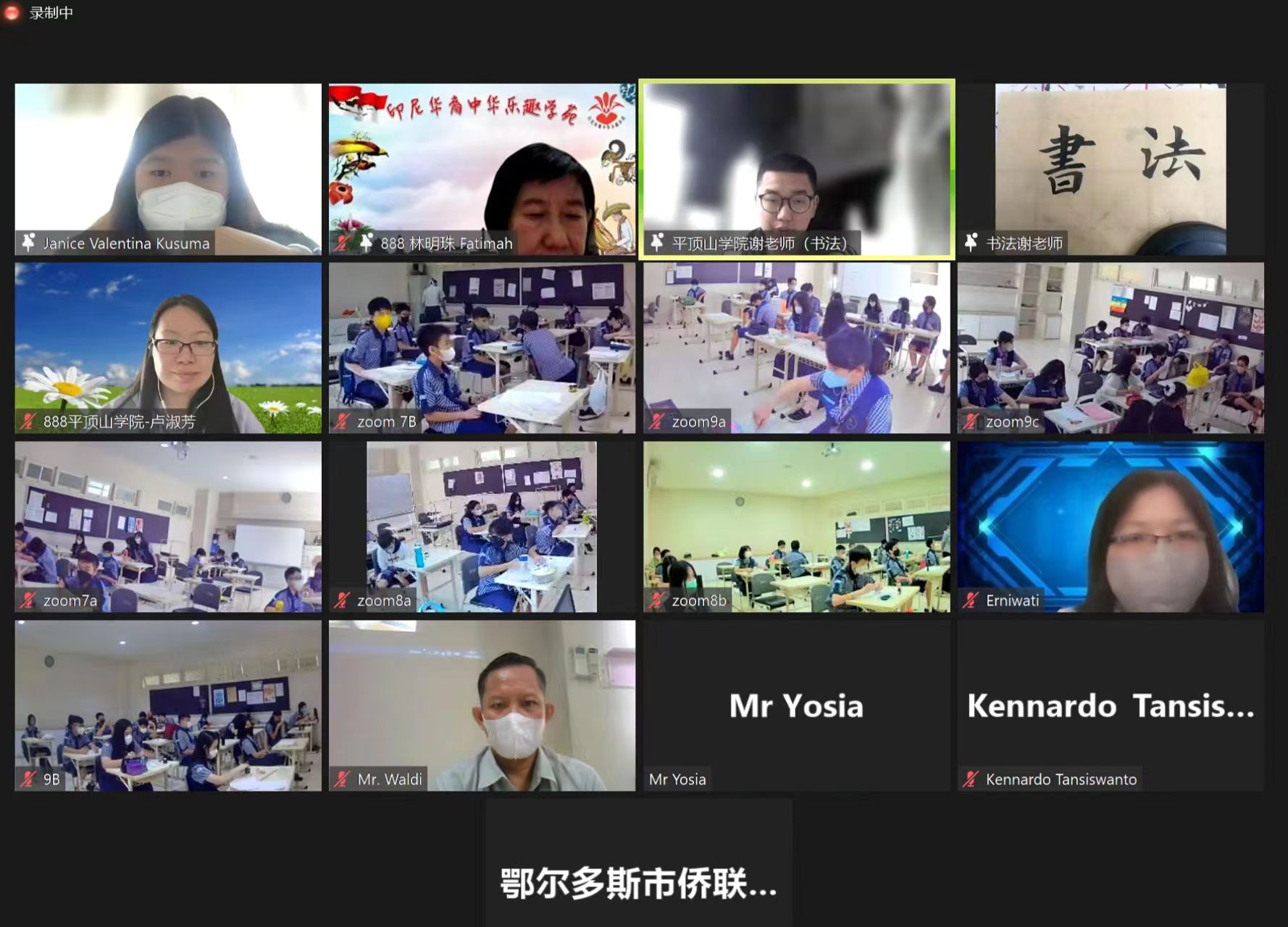 北京时间3月21日,一年一度的印度尼西亚“中国传统文化节”活动在印度尼西亚泗水光明未来学校举办,150余名当地中文学习者参与,文学院国际中文教育团队中文书法主讲教师谢柠伯与助教老师郭海楠通过Zoom平台参加了本次活动。