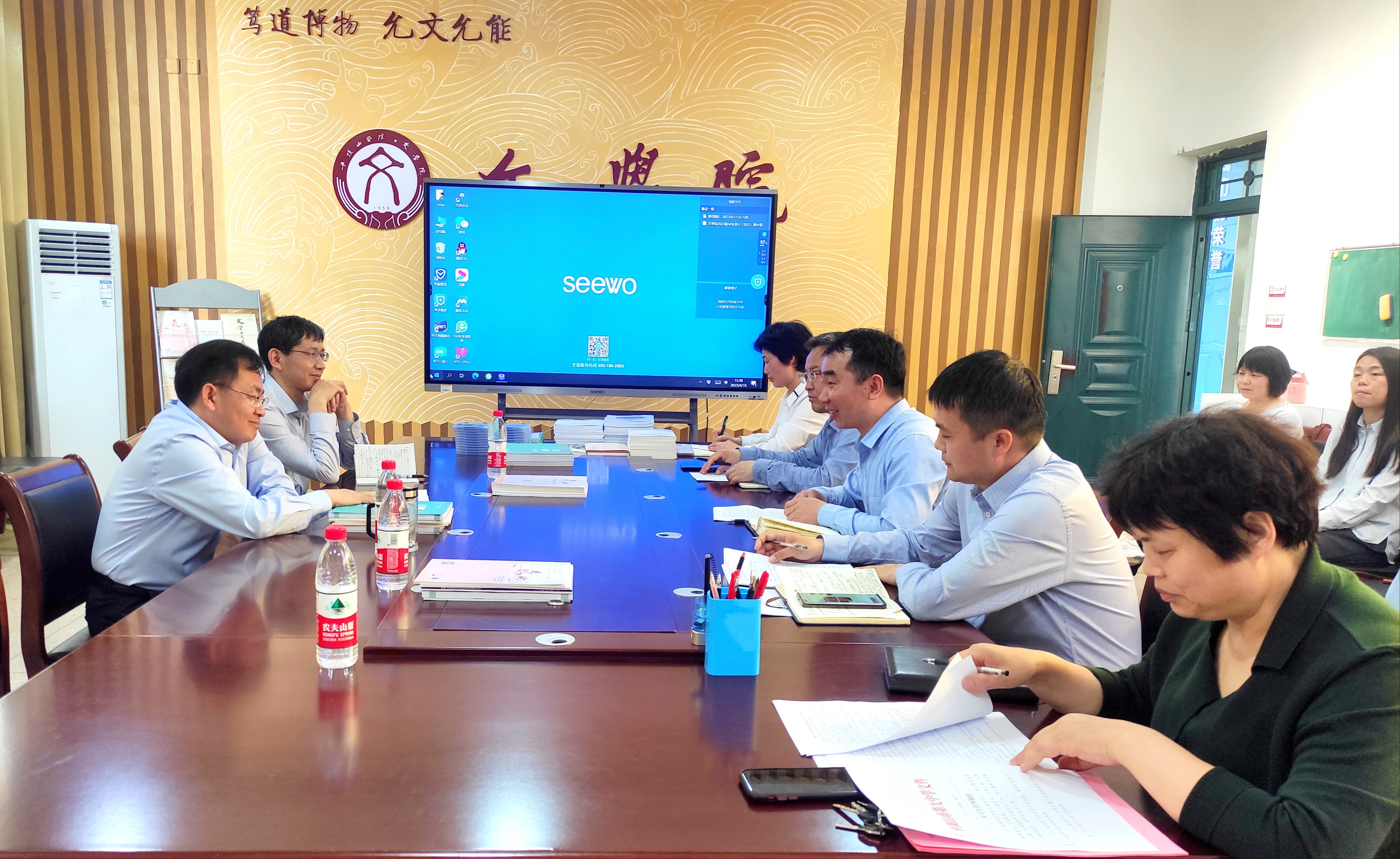 4月18日下午,校长郭秋平在校长办公室负责同志陪同下,到文学院调研,实地了解文学院发展情况,并与文学院领导班子成员、教研室、办公室负责人、高层次人才代表等座谈交流。