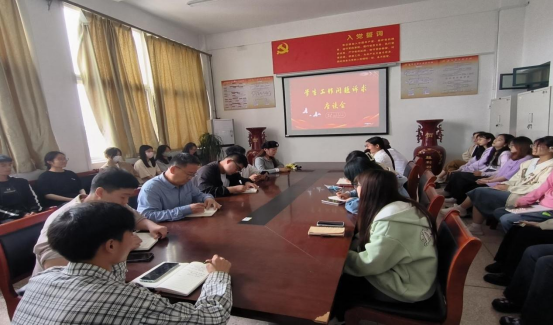 为深入落实好学校召开的学习贯彻习近平新时代中国特色社会主义思想主题教育动员会精神,坚持目标导向和问题导向相结合,以解决问题为抓手,通过座谈调研,倾听学生心声,了解学生对学院教学、管理、服务等各方面的意见和建议,推动工作落地落实,进一步提高学生管理水平,5月4日,11日下午,我院在1422会议室召开两次学生工作问题诉求座谈会。文学院党委副书记李培斌,2022级、2021级各班学生代表及辅导员老师参加座谈。