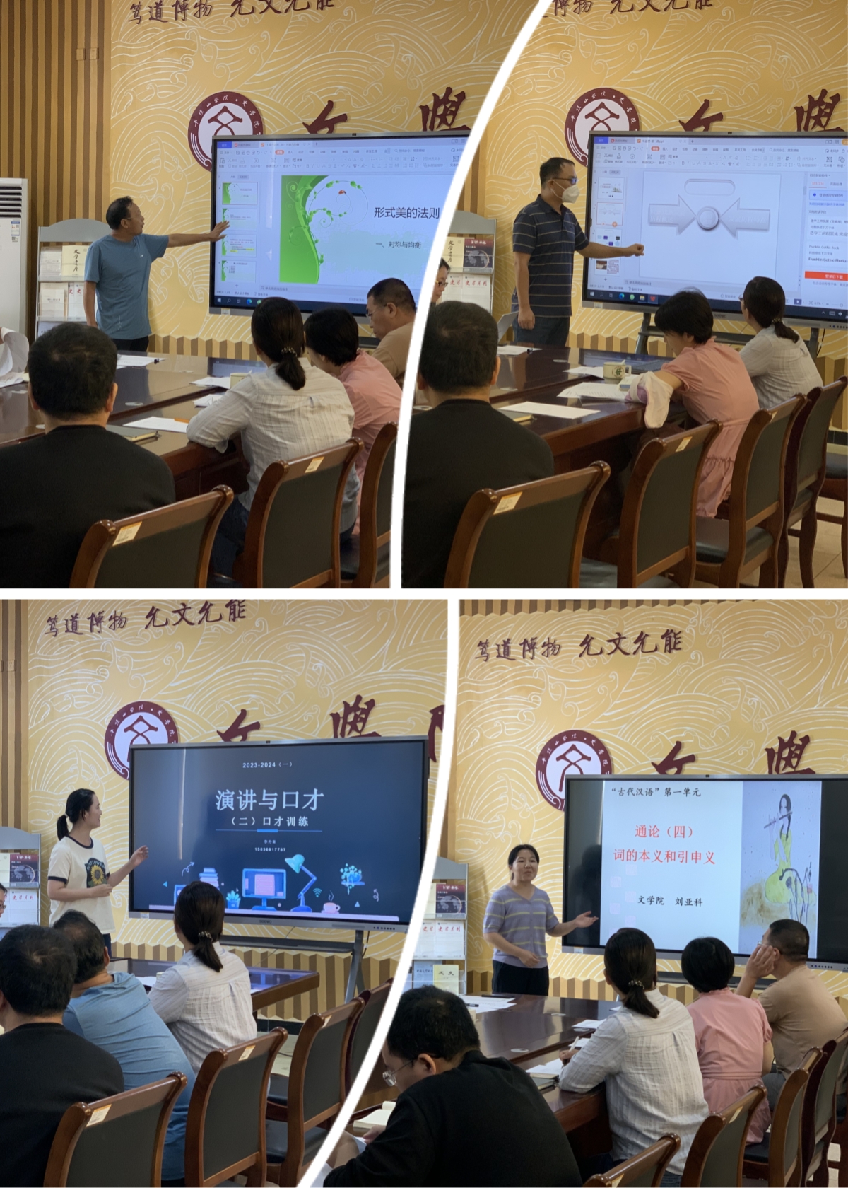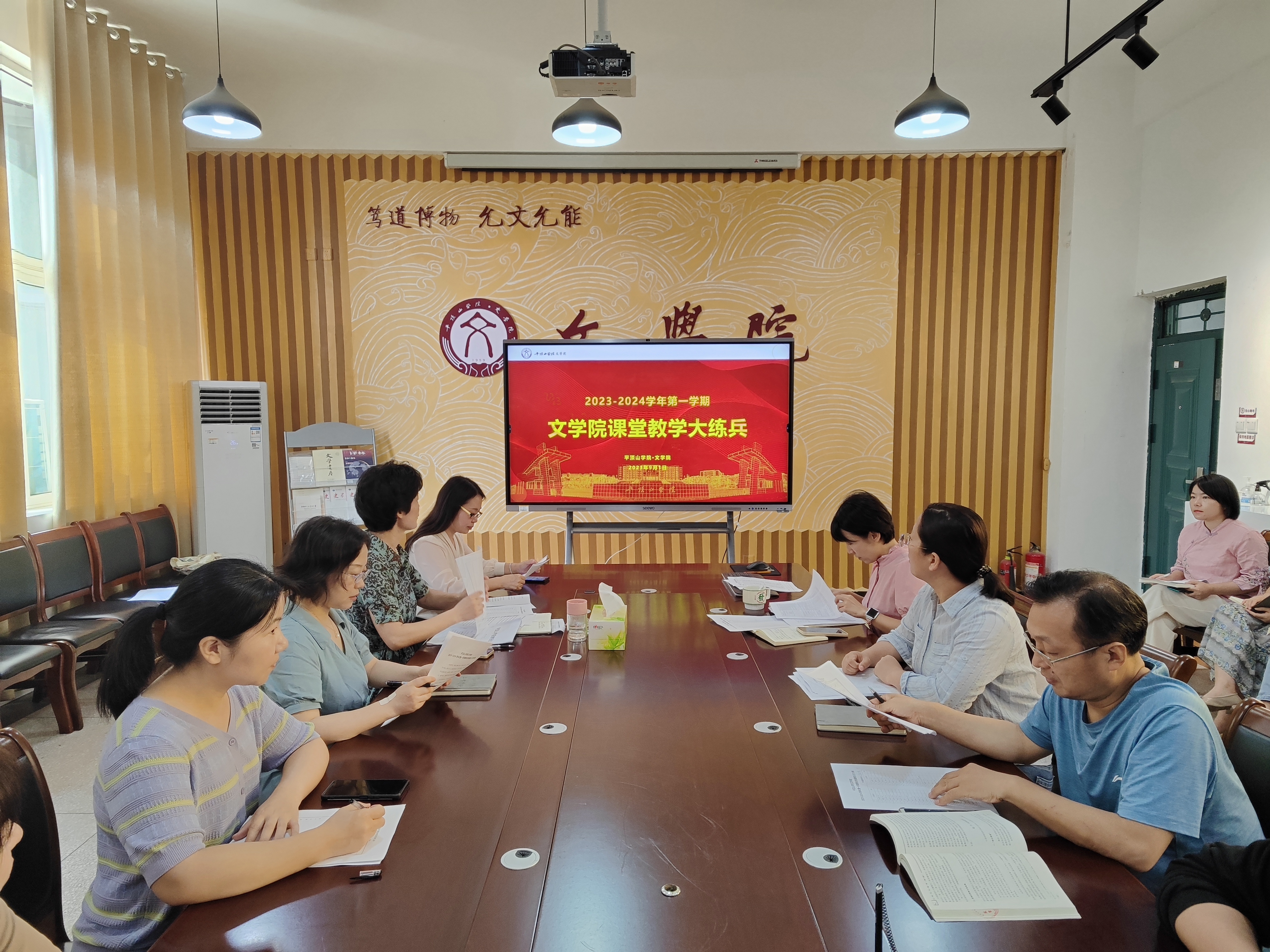 9月1日上午,我院在1301会议室举办2023-2024学年第一学期课堂教学大练兵活动。2023-2024学年第一学期给四个年级上课的文学院教师及兼职教师参加了此次大练兵活动。活动由文学院副院长王惠主持。