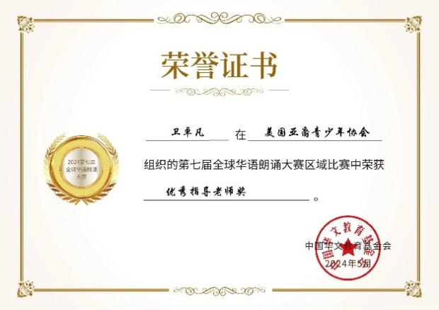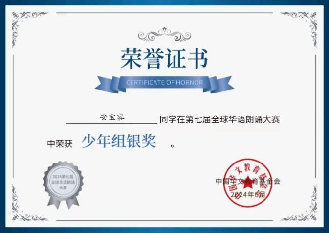 北京时间6月30日,由中国华文教育基金会主办的第七届全球华语朗诵大赛落下帷幕。河南省华文教育特色基地暨平顶山学院文学院国际中文教育团队成员辅导的8名选手进入全球总决赛,与全球4000多位选手同台竞技,最终,来自美国亚裔青少年协会的安宝容获少年组银奖,王瑞鲲、袁逍然、周子芮等获少儿组特别金奖,张雪莹、卫卓凡获优秀指导教师奖。