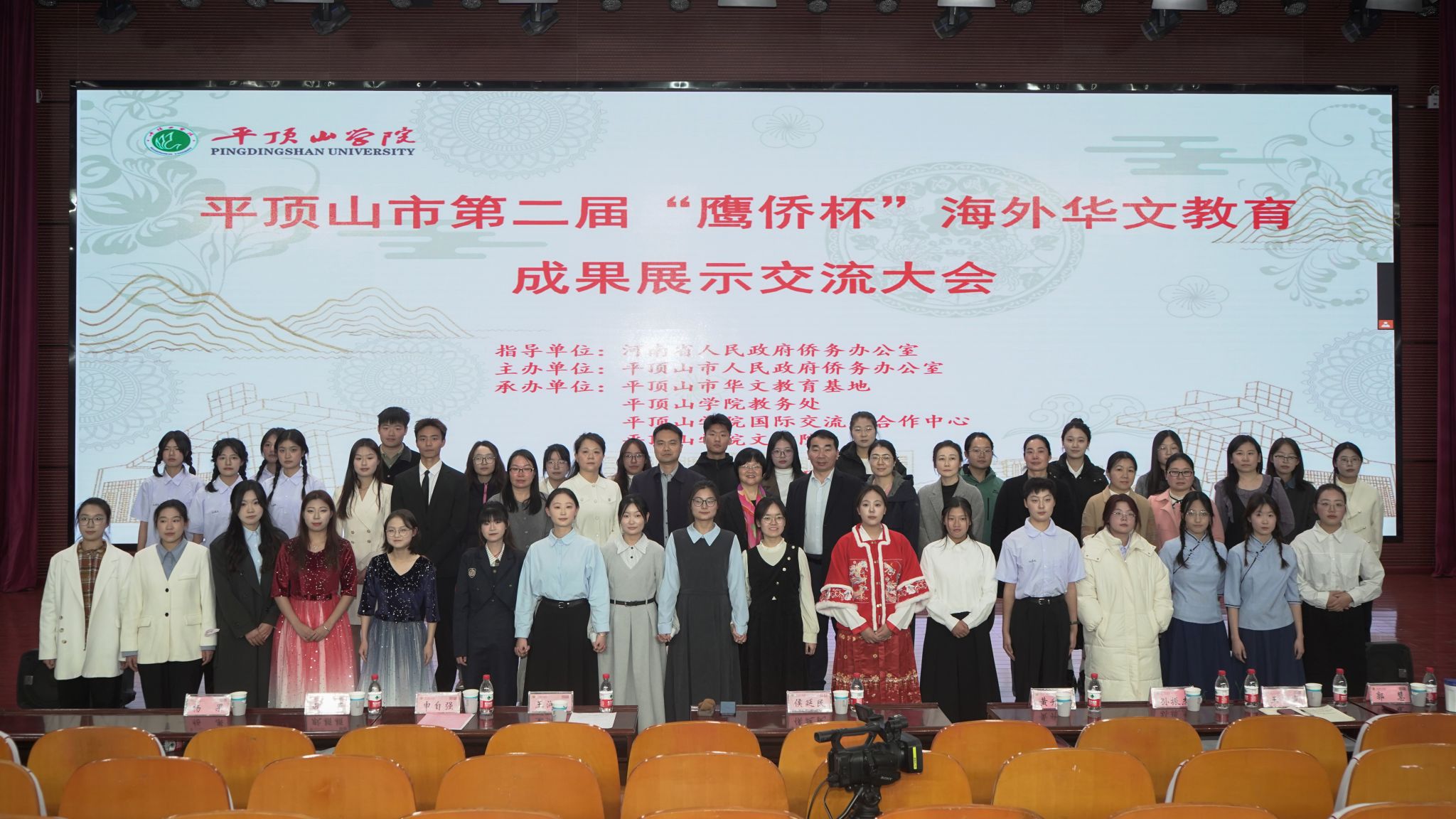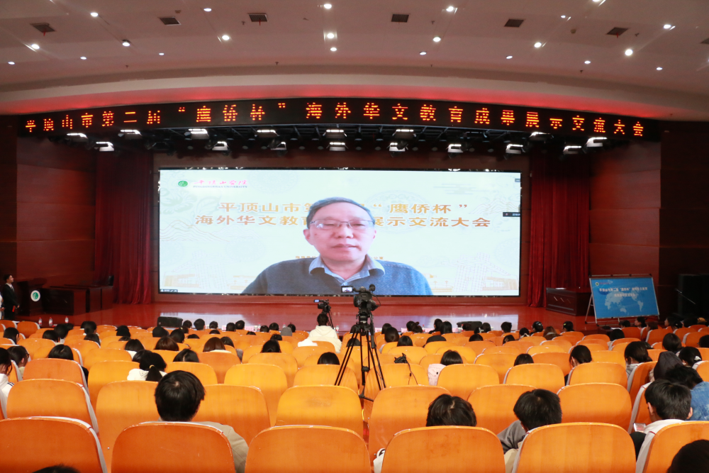 11月28日下午,平顶山市第二届“鹰侨杯”海外华文教育成果展示交流大会在我校湖滨校区中心会议室举行。国家语委海外华语研究中心主任郭熙教授,河南省人民政府侨务办公室侨务事务处处长王润玲,平顶山市人民政府侨务办公室主任陈延辉,我校党委副书记侯延民,文学院党委书记申自强、院长孙振杰、副院长王惠、国际中文教育教研室主任卢淑芳出席大会,平顶山市华文教育基地青鸢国际中文教育团队及文学院各专业师生450余人参加大会。会议由我校党委统战部部长黄升华主持。