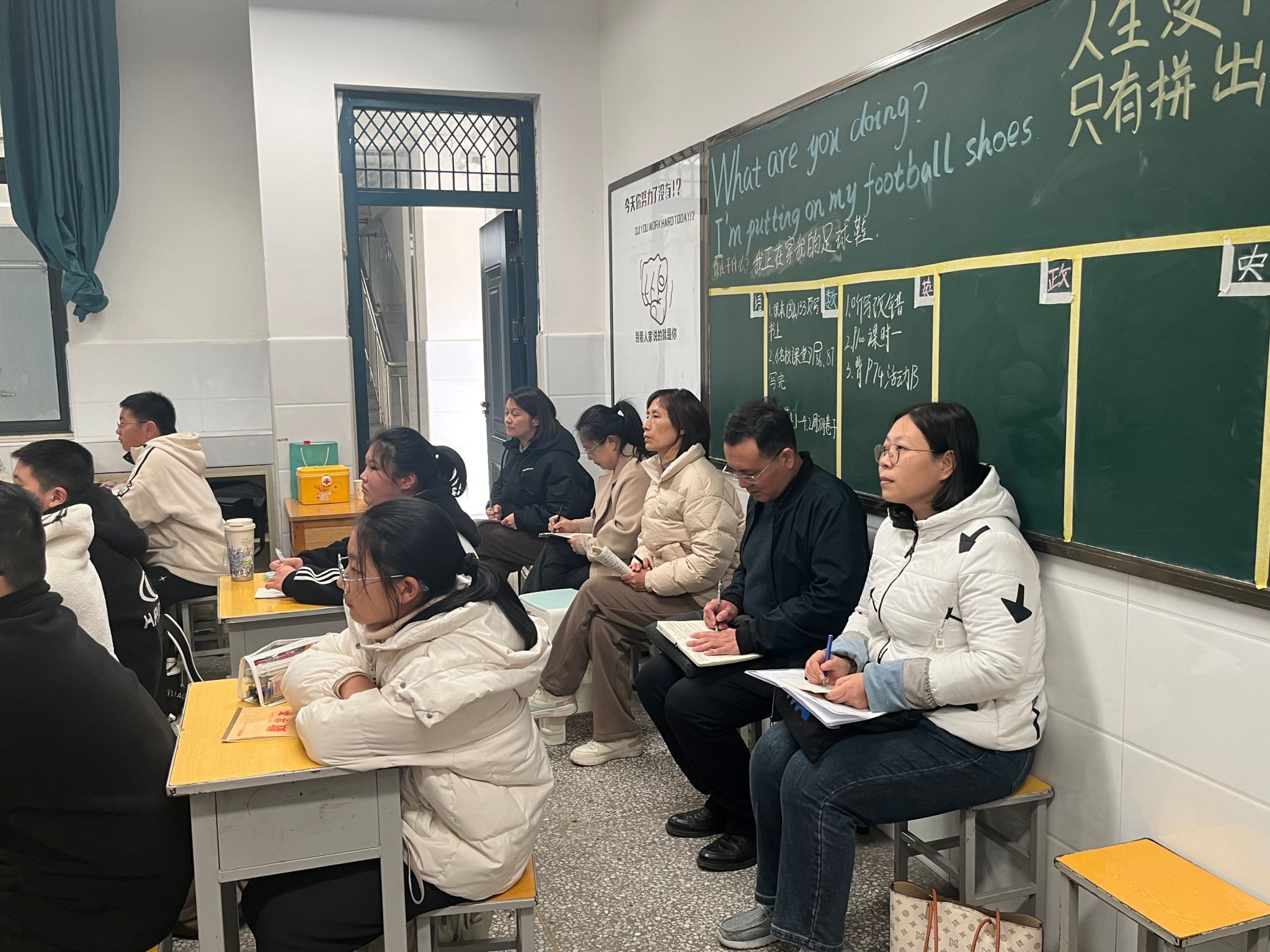 检查小组认真听课(摄影/朱玉雯)