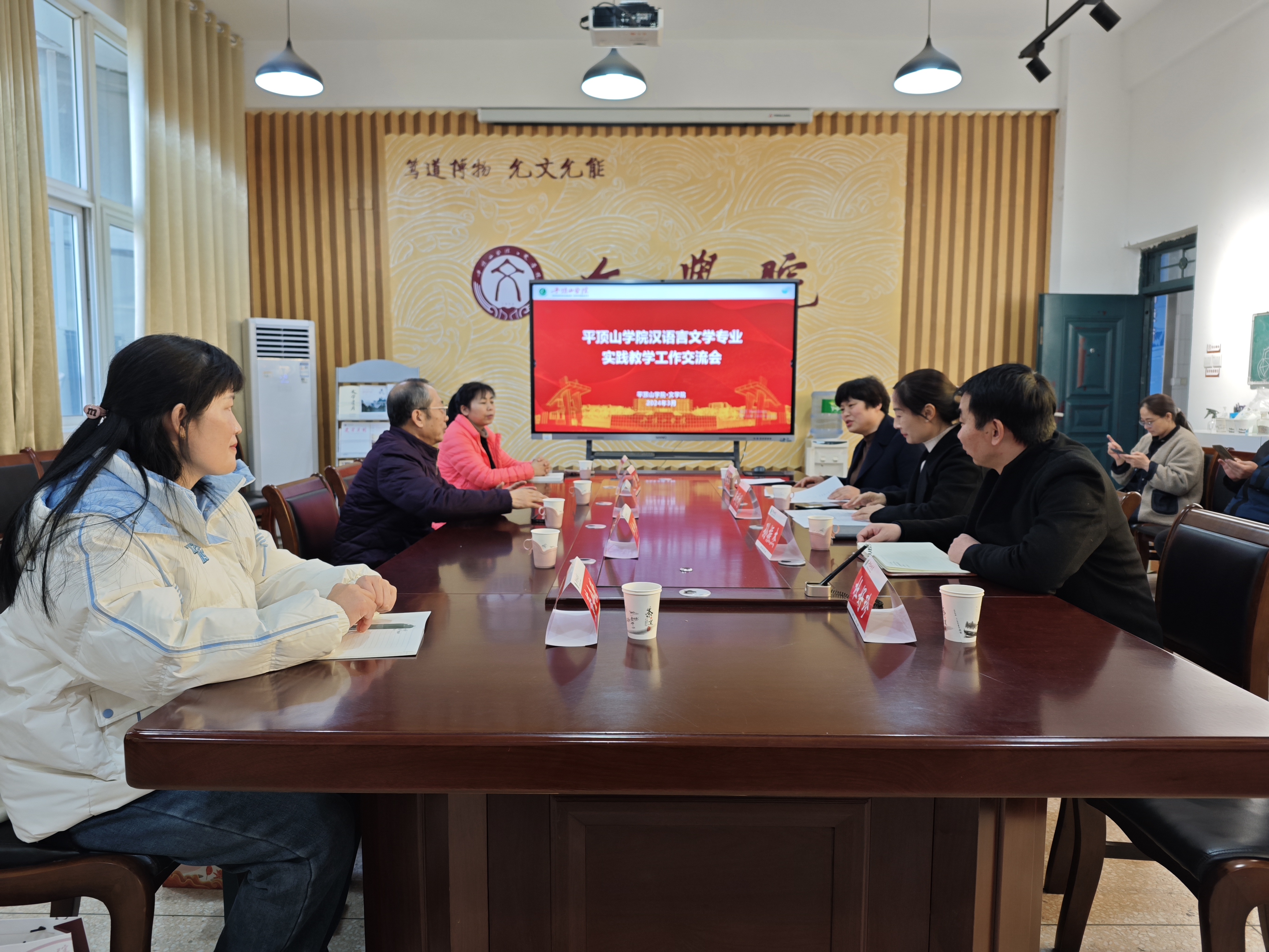 为了促进我校汉语言文学专业实践教学工作的深入开展,探索教学新模式,3月8日下午,平顶山学院汉语言文学专业实践教学工作交流会在我院1301会议室举行。会议特邀平顶山市教体局教研室原初中部主任、语文教研员张贵斌,平顶山市三六联校六中校长詹娜,宝丰县第二初级中学校长牛凯辉,平顶山市新华区教体局语文教研员杜好珍,平顶山市第七中学教科室主任张清珍,平顶山市第五中学教科室主任董会歌出席。我校教务处副处长郭利利、文学院院长孙振杰以及教师代表和2024届毕业生代表参加了会议。交流会由文学院副院长赵焕亭主持。