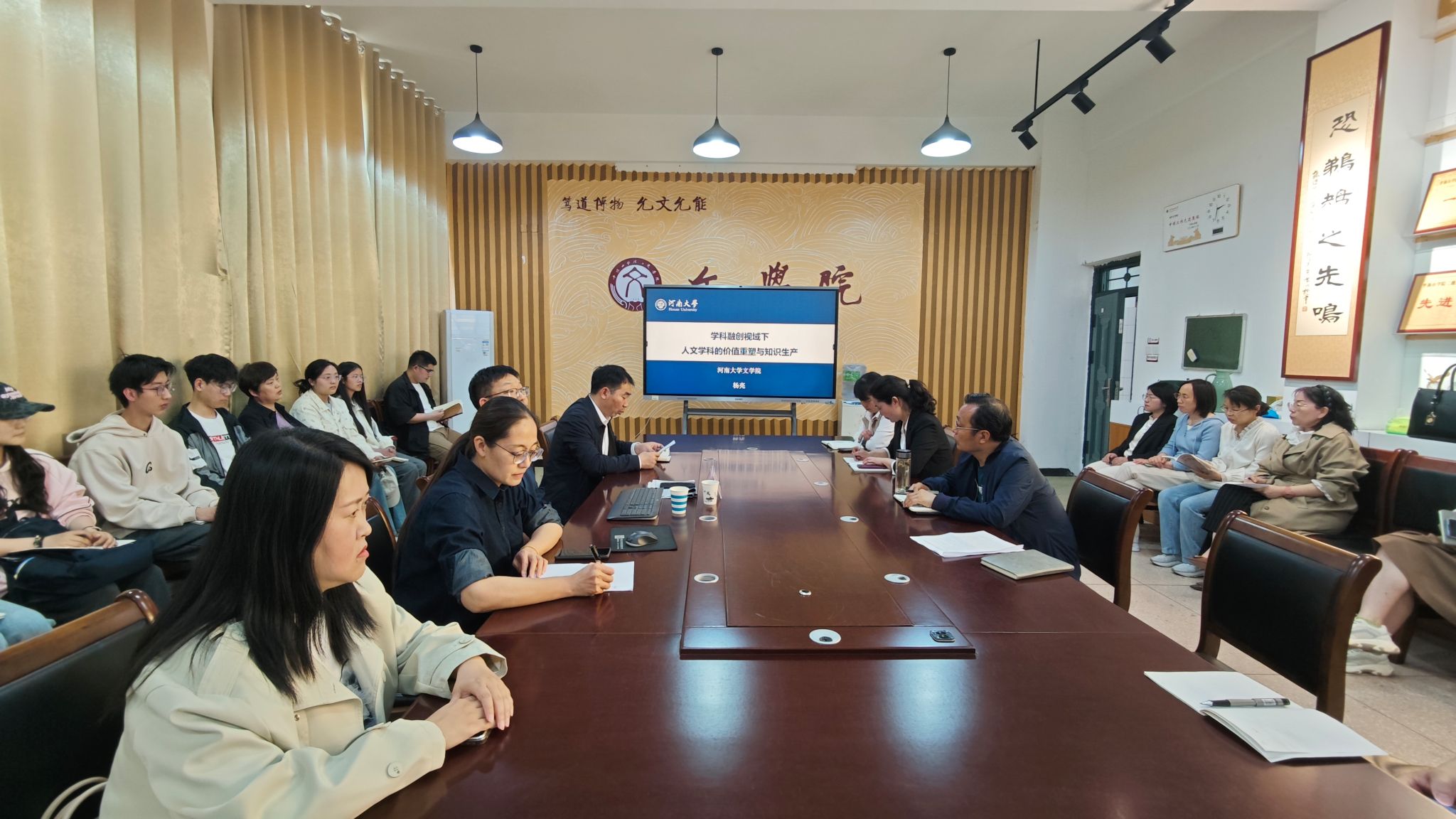 为深入贯彻教育家精神,全面提升教师队伍专业化水平,推动教育教学理念革新,4月10日下午,我院教师发展中心在1301会议室举办2025年第三场专题培训,河南大学文学院教授杨亮受邀作题为《学科融创视域下人文学科的价值重塑与知识生产》的报告。来自我校文学院、新闻与传播学院、外国语学院等文科院系的师生40余人参加了报告会。