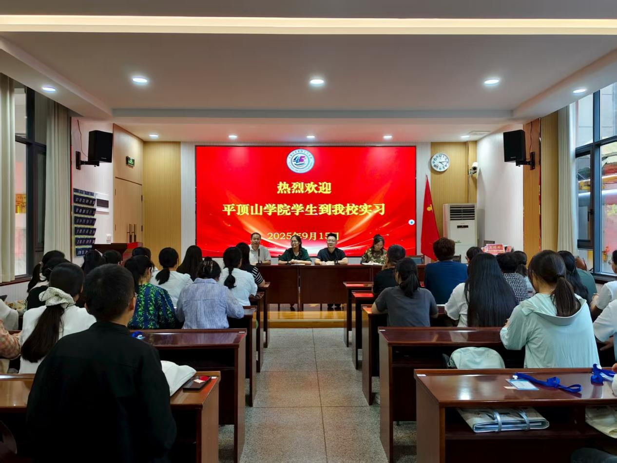9月15日,在文学院教师彭月星的带领下,来自汉语言文学、数学与应用数学、化学专业共19名2026届毕业生前往平顶山市第四十六中学开展教育实习。在该校会议室,校长杨鹏、副校长周澍增为我校师生举行了见面会。该校教务处主任刘跃峰主持见面会。